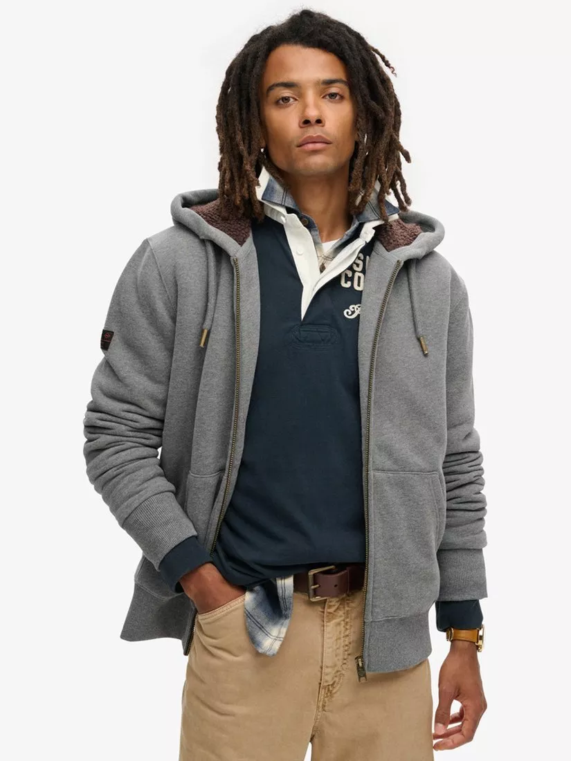 The hood has drawcord adjustment, and the front has a full zip fastening. Made with two pockets, ribbed cuffs and hem, and a signature Superdry patch.