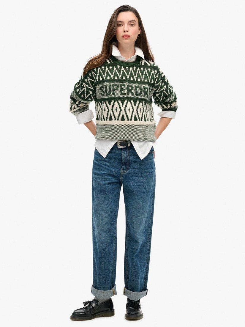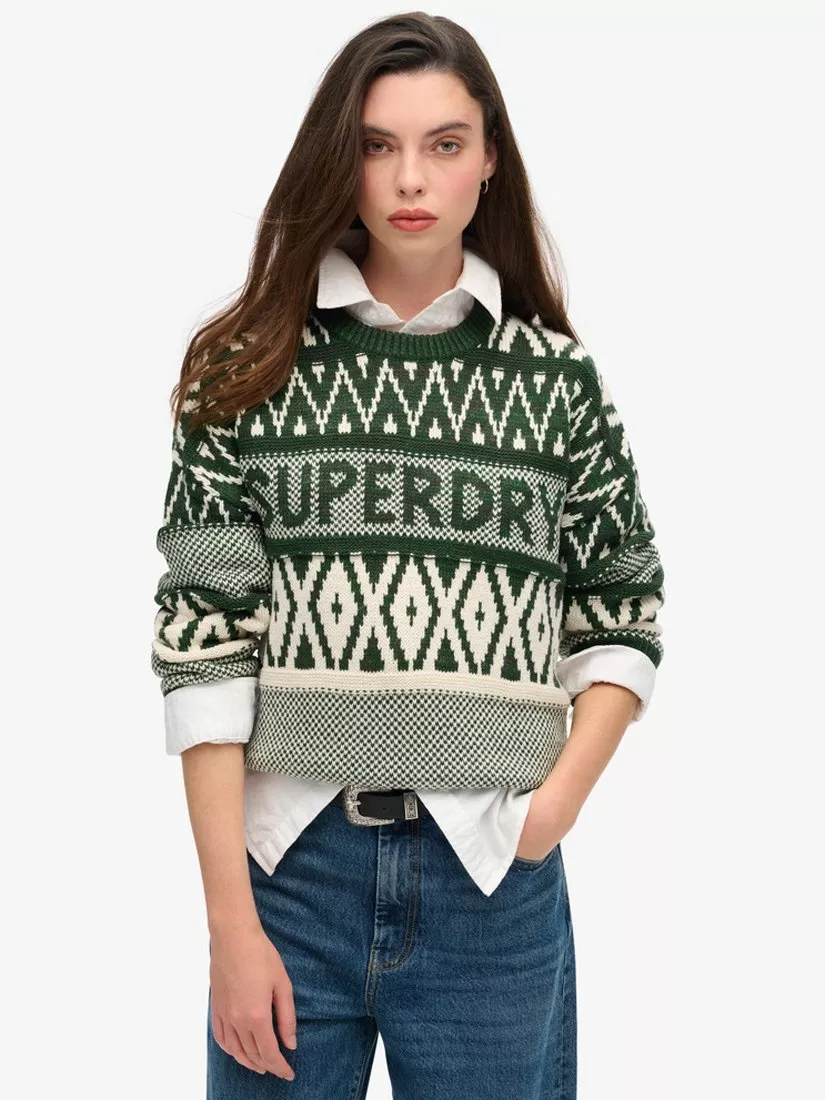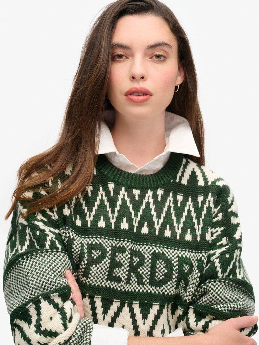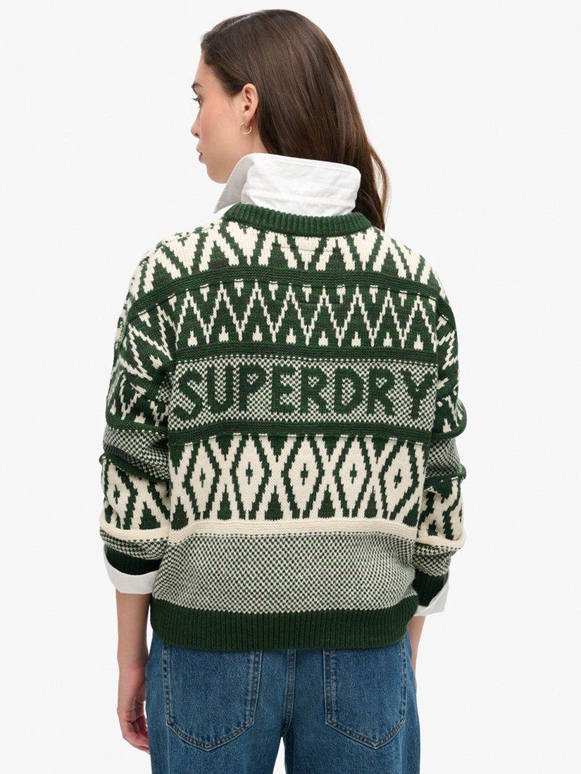 SuperdryBranded Pattern Crew Jumper, Darkest Pine Green
