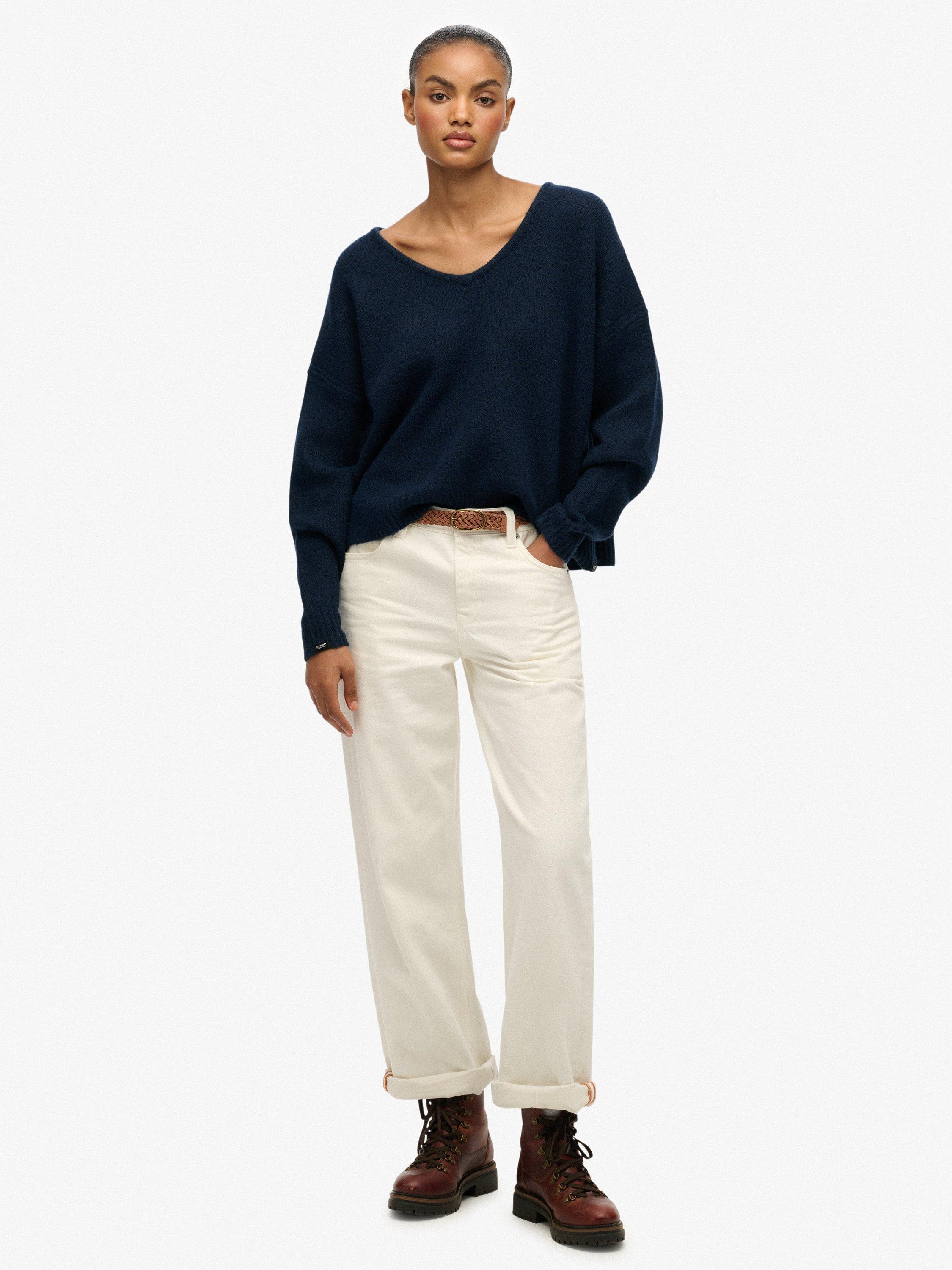 The Brushed Oversized V Neck Jumper is a gorgeous, understated addition to your autumnal rotation this season. Curated with a cosy brushed fabric and an oversized fit, the silhouette is effortlessly chic and perfect for styling.