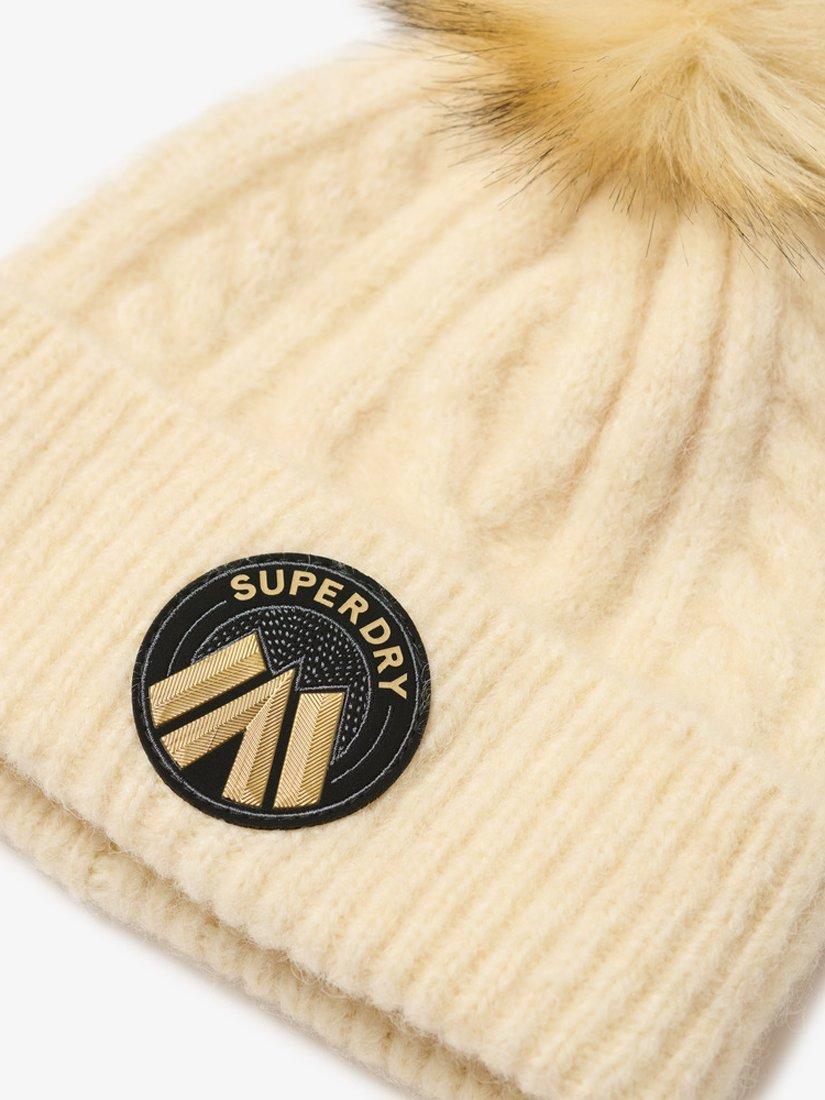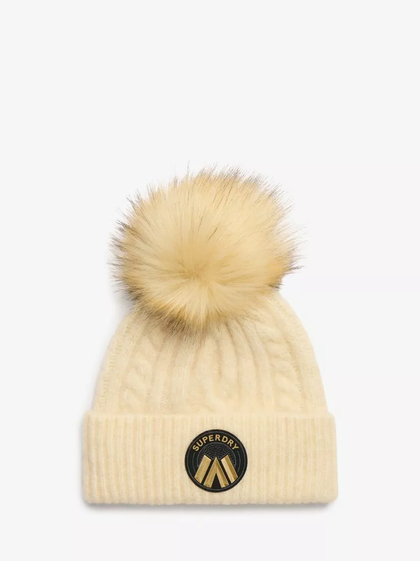 SuperdryCable Luxe Knit Bobble Hat, Oatmeal White