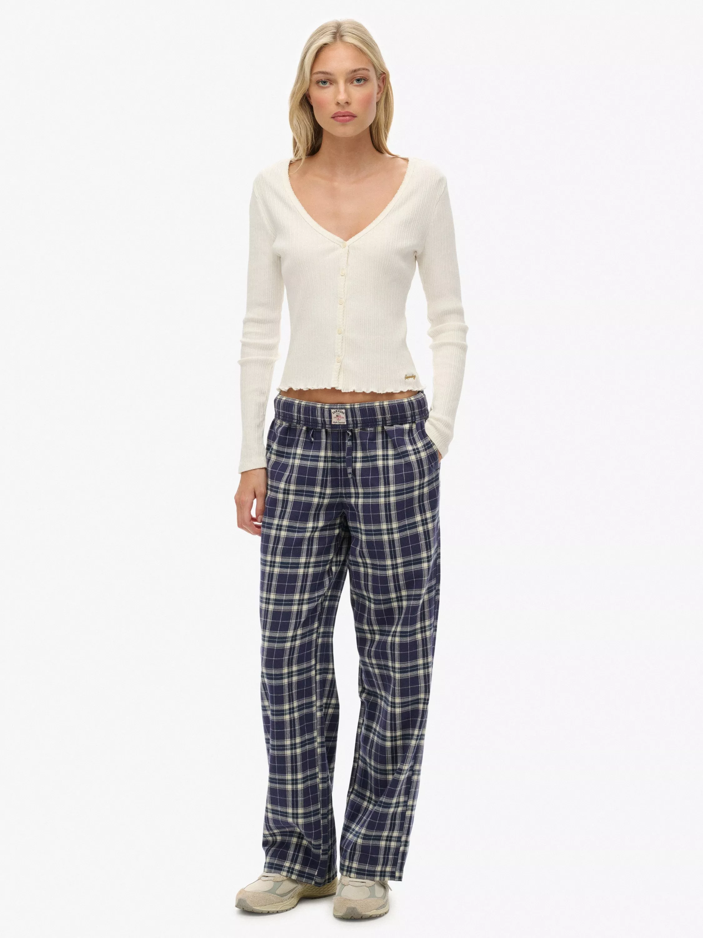 SuperdryCheck Wide Leg Trousers, Navy Check