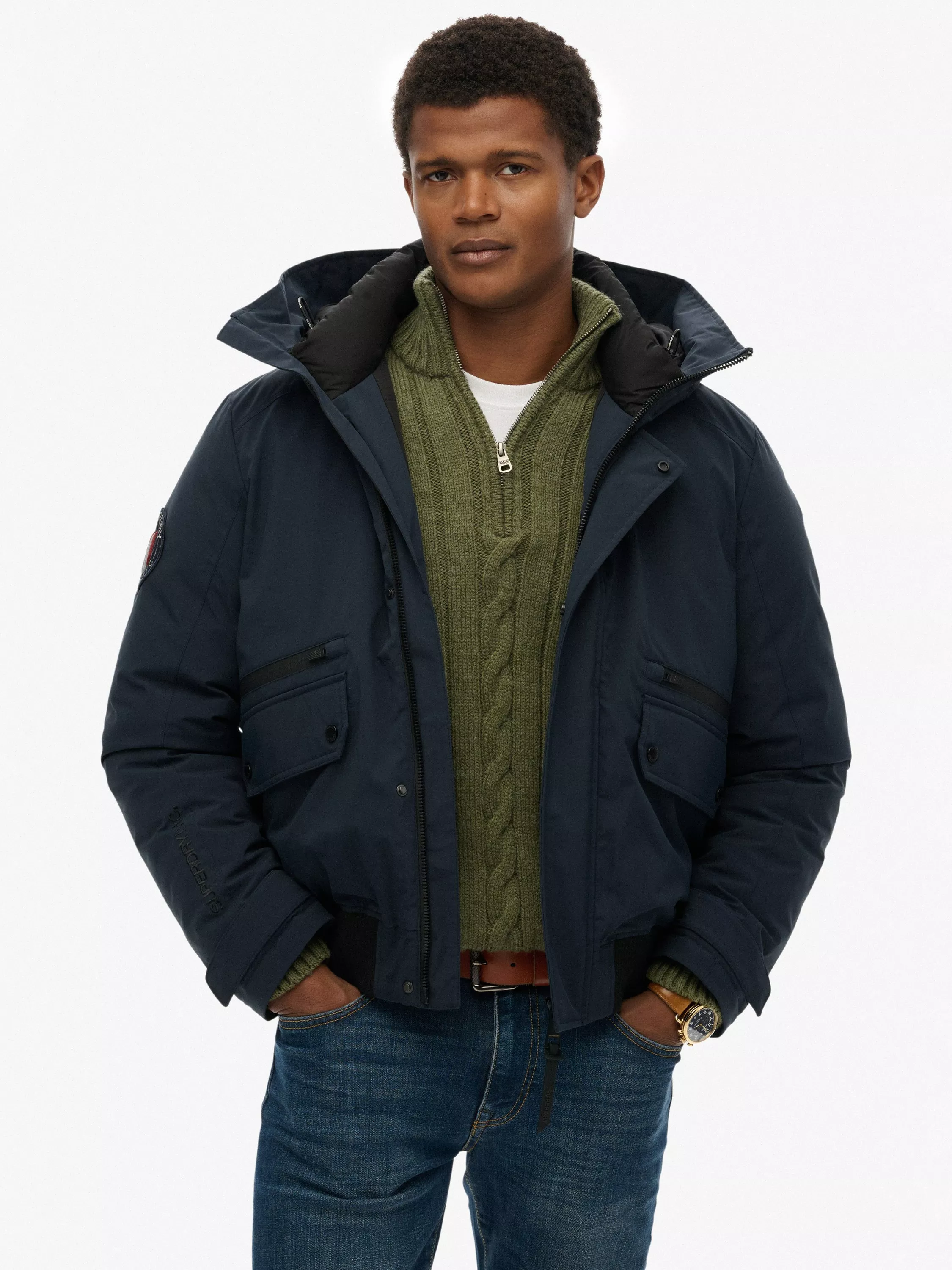 The City Padded Bomber Jacket - where comfort meets cool, a stylish loose cut makes this a must-have shape, coated with an advanced water-resistant finish. Features include a hood, rib hemline and zip and popper fastenings. It's padded throughout with a single internal pocket and four external pockets. Finished with branded detailing the City Padded Bomber Jacket has been expertly crafted with the ideal balance between warmth, practicality and style.