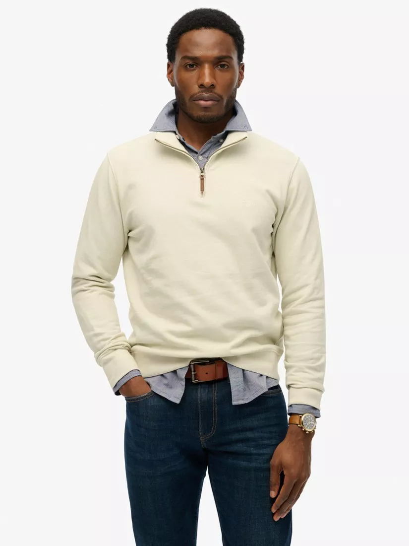 Round off your staples with the Classic Essential Half Zip Jumper. This layering piece is the ideal choice to complement your authentic style with its minimalist embroidery, allowing it to elevate your looks instead of distracting from them, making it a reliable staple for everyday wear. It features a relaxed Superdry fit—not too slim, not too loose, just right—so you can go for your normal size. The jumper also includes half-zip detailing with ribbed trims and a small embroidered logo on the chest.