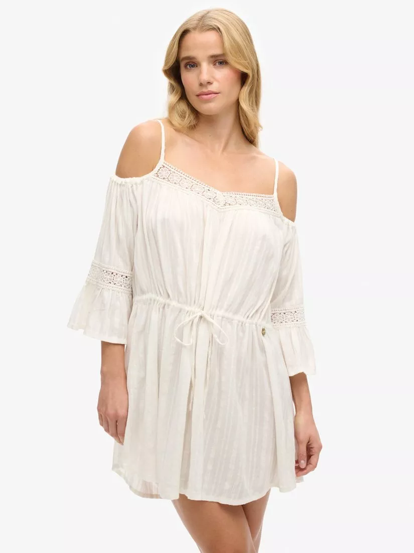Channelling retro appeal with its swing silhouette, this mini dress from Superdry is rendered in a cotton blend. Show-stopping with a cold shoulder design and three quarter length sleeves, it is a celebration of minimalism.