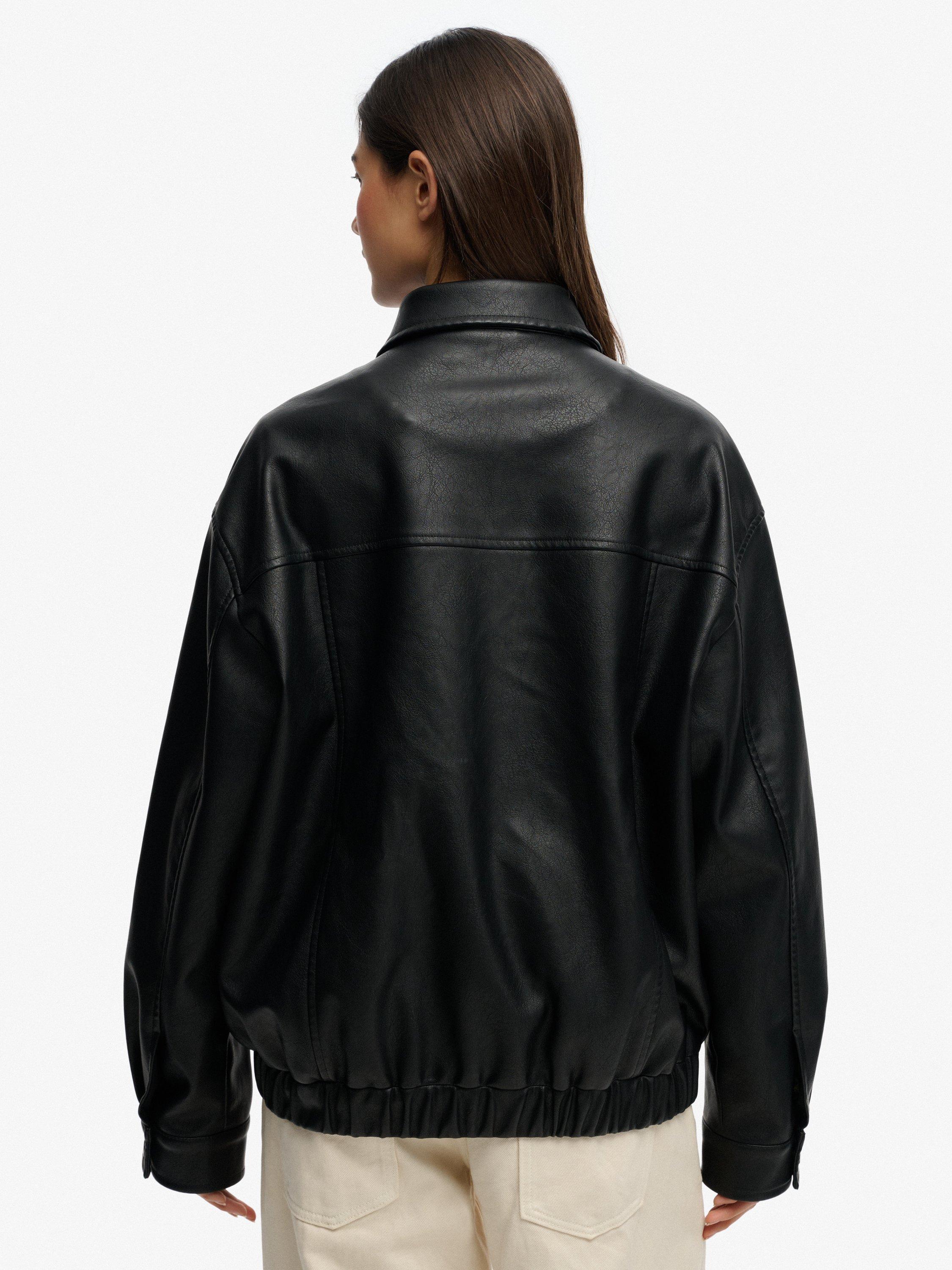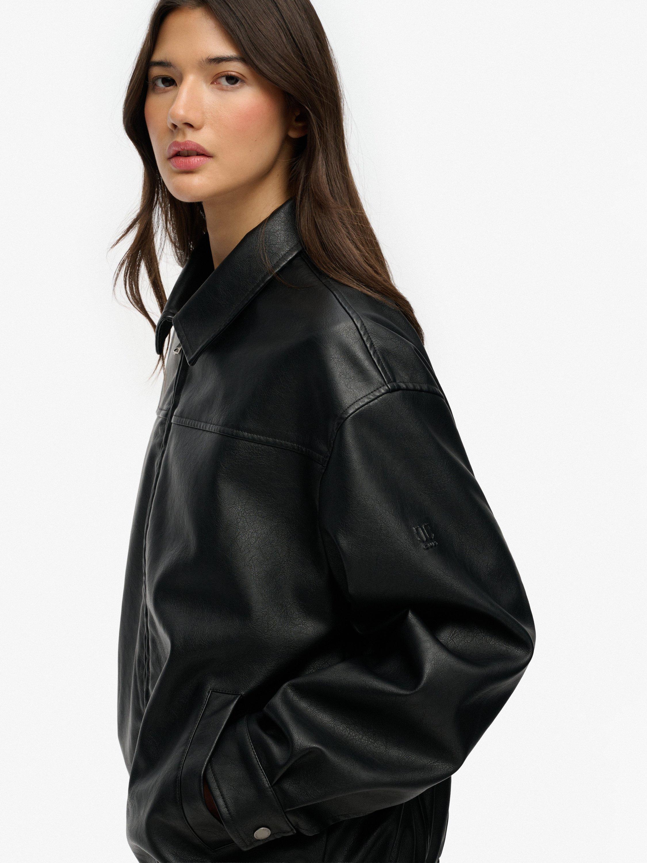 Embrace your style and let it flow with this Collared Oversized Bomber Jacket, the ultimate piece your wardrobe didn’t know it needed. Designed in a trendy oversized cut and finished with a faux leather look, it brings that effortless cool that elevates every outfit with a touch of edge.