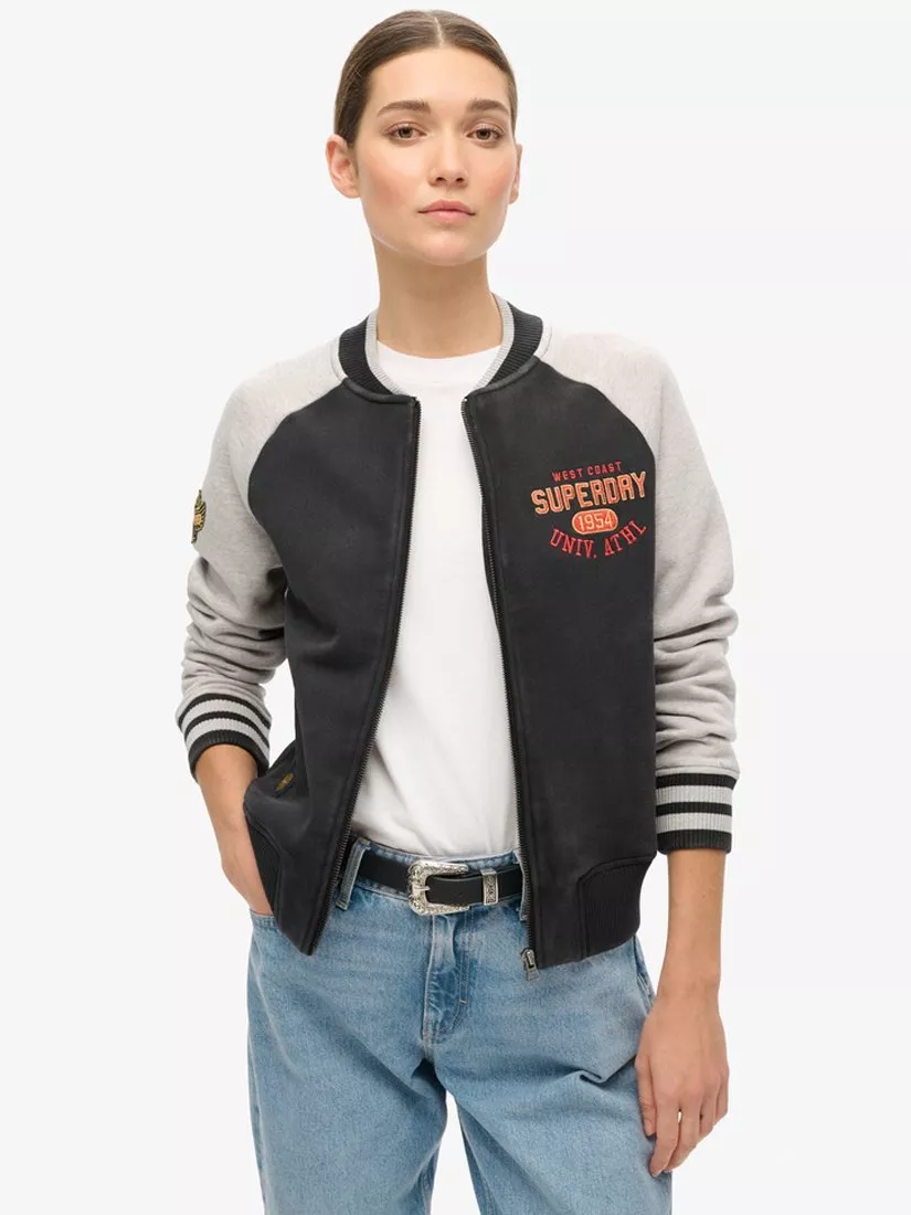 SuperdryCollege Script Graphic Bomber Jacket, Black, 16