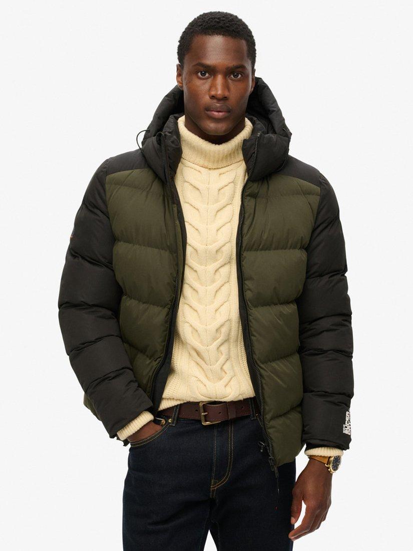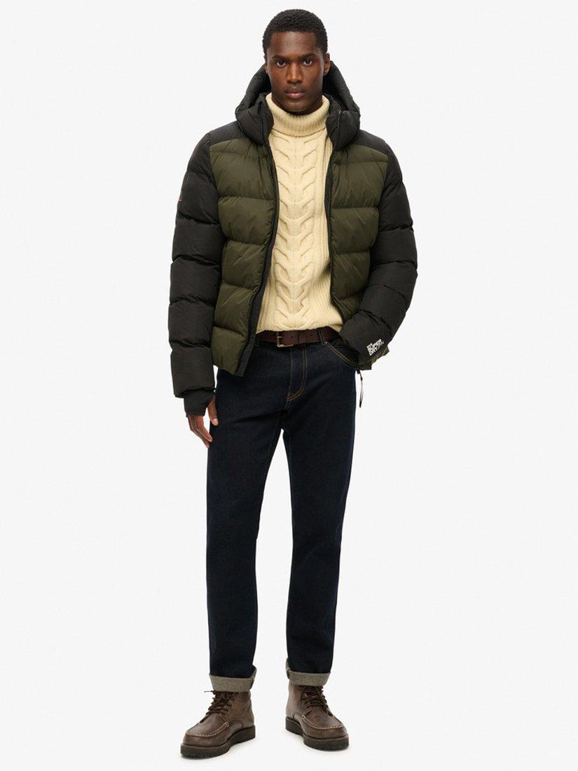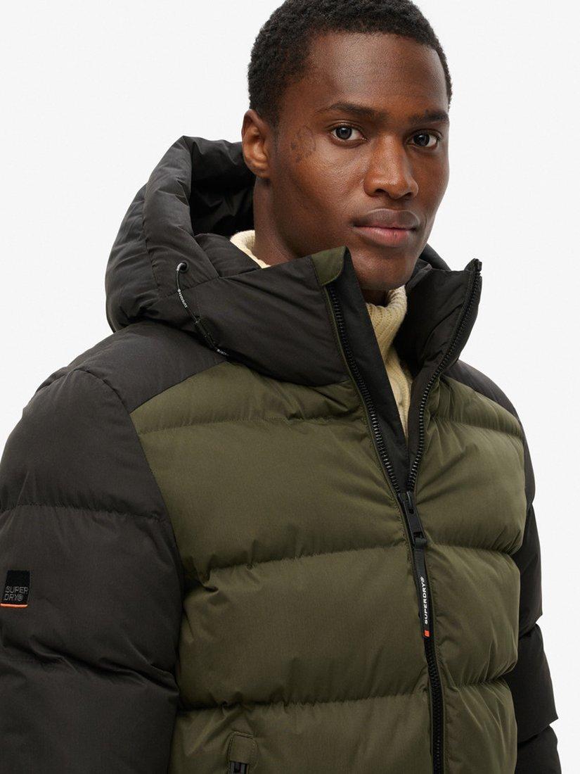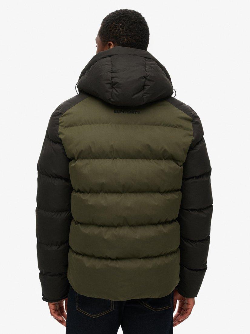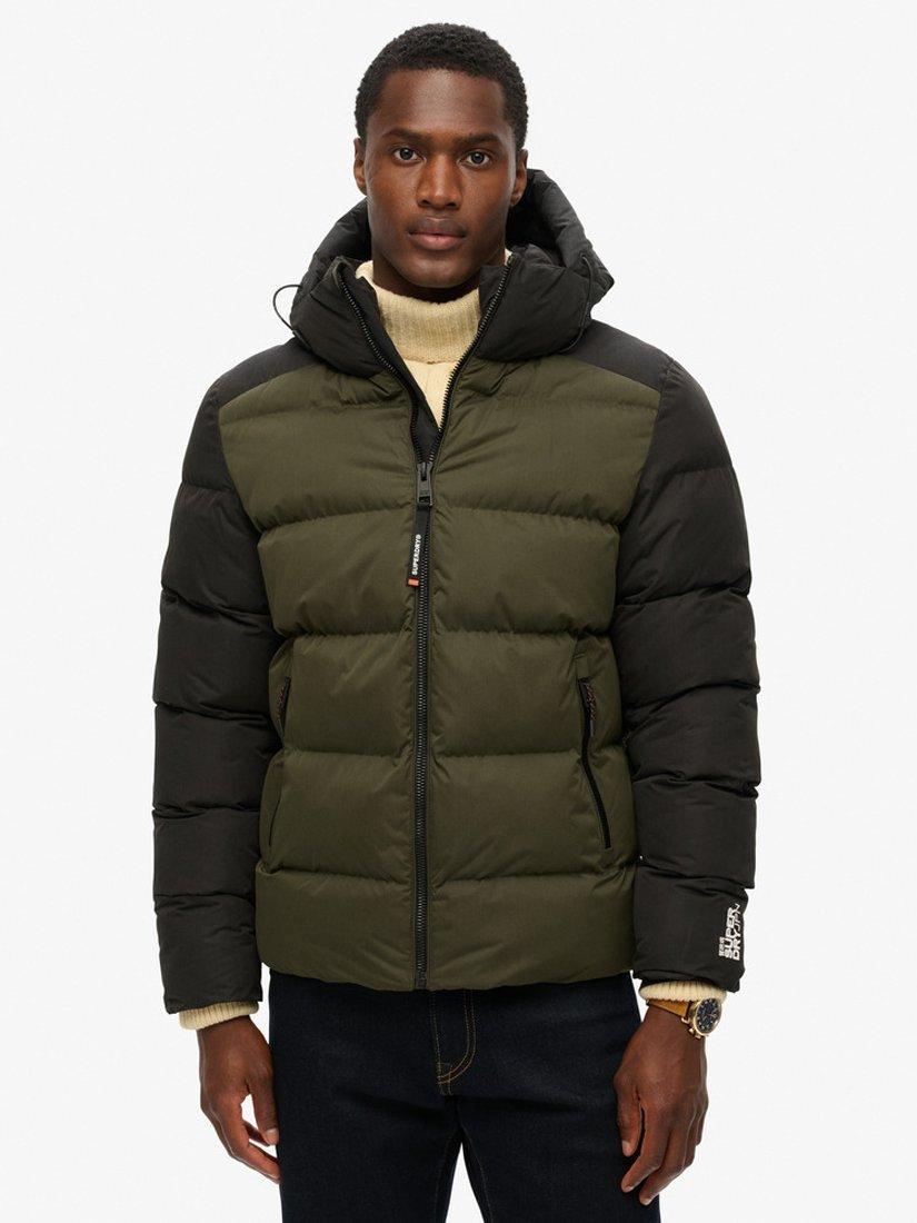 Crafted with your style and comfort in mind, the Hooded Colour Block Sport Puffer is perfect for this season as the weather gets colder and darker. With contrasted stitching and colour blocking, it s the perfect jacket for matching your outfits or adding a pop of colour to switch it up. Relaxed fit- the classic Superdry fit. Not too slim, not too loose, just right.