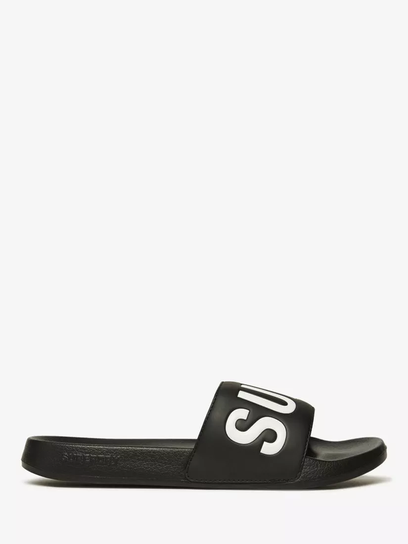 SuperdryCore Graphic Pool Sliders, Black/Optic