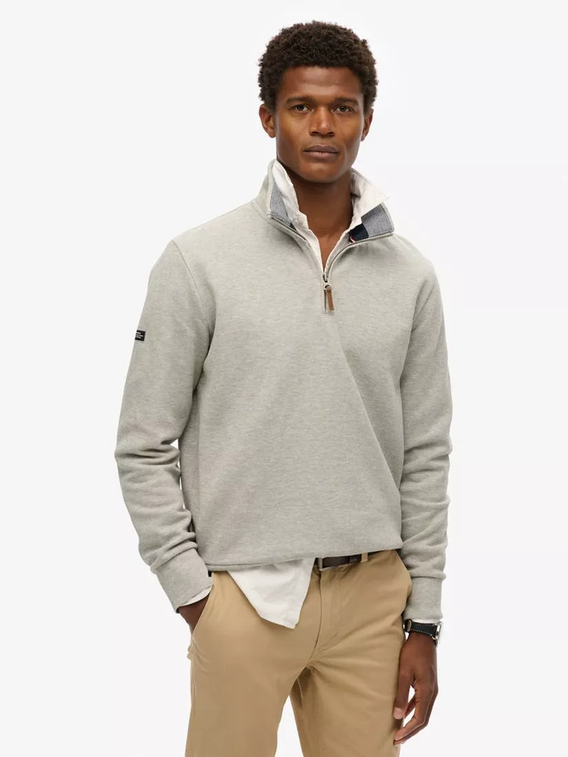 SuperdryCore Pique Henley Sweatshirt, Grey Marl