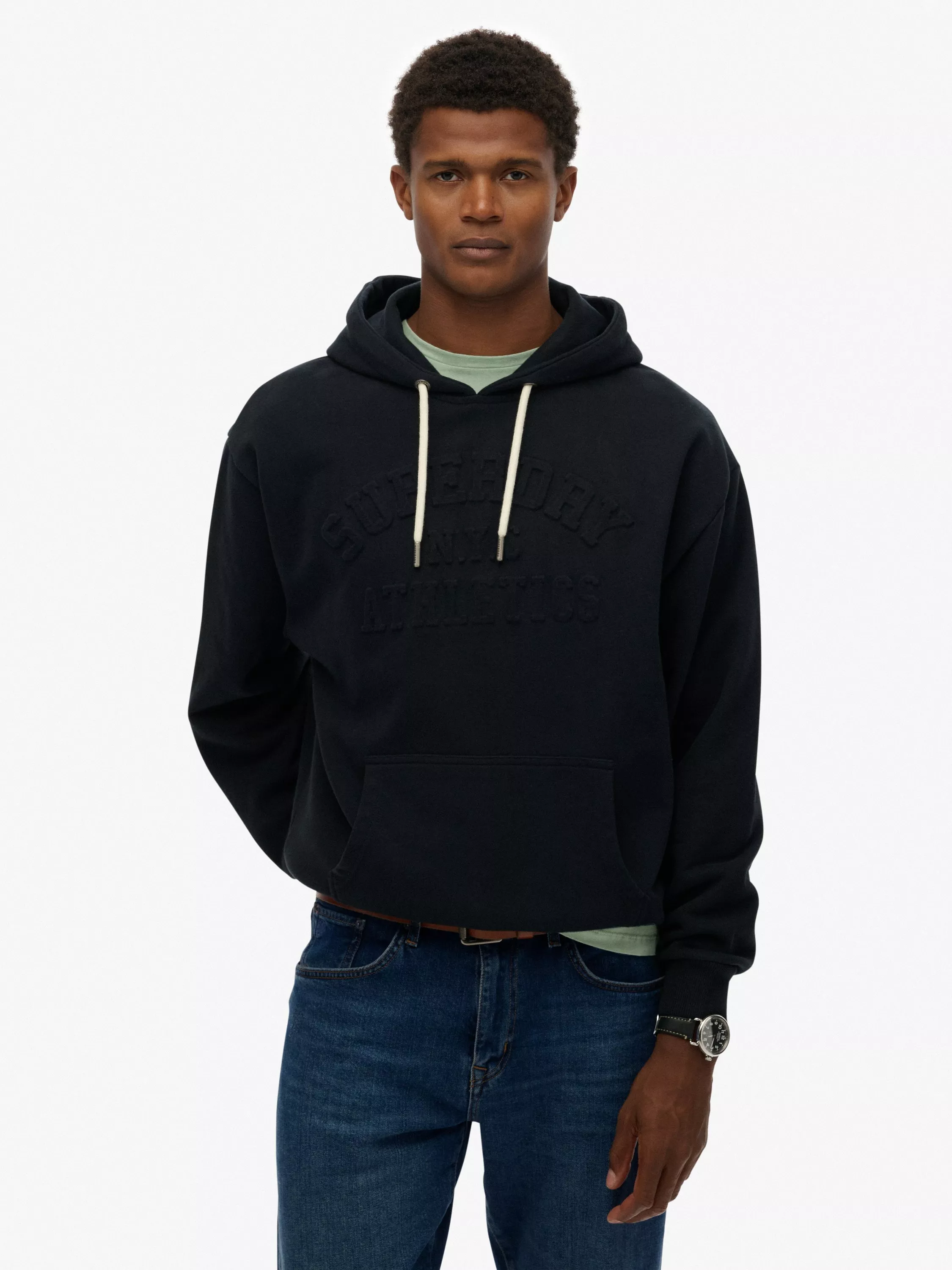 SuperdryCotton Athletic Embossed Oversized Hoodie, Jet Black