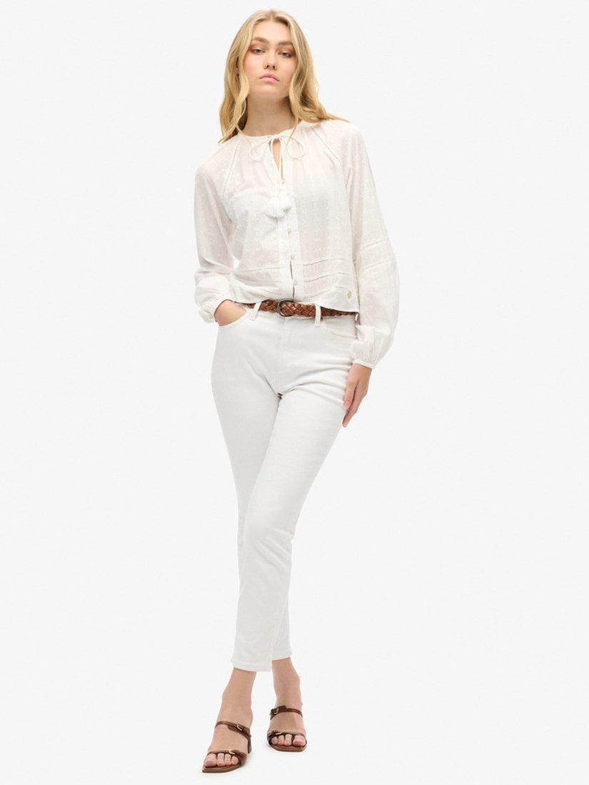 Framed with a classic v-neckline and long sleeves, it's made from cotton for comfortable wear and slips on well with tonal denim ready for the summer.