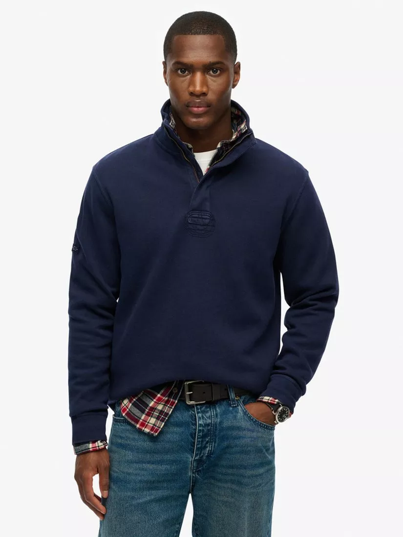 SuperdryCotton Classic Pique Half Zip Jumper, Washed Navy