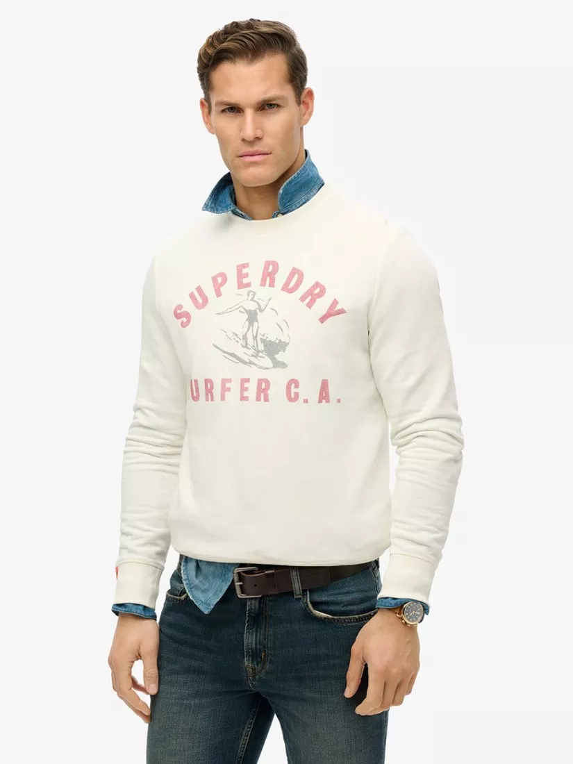 The laid-back surfer vibe is always an effortlessly confident look. This sweatshirt's comfortable shape is ideal for throwing on over shorts at the beach and the slightly faded finish to the graphic gives a lived-in aesthetic that suggests a relaxed, chilled-out frame of mind.