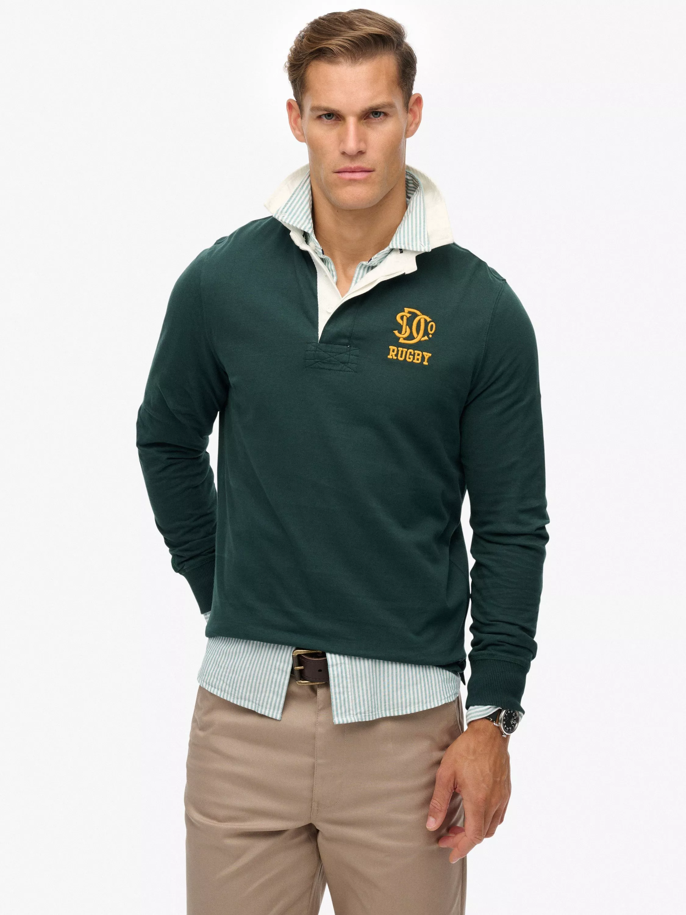 The Vintage Athletic Jersey Rugby Top is an iconic piece that calls back to both British sport and American adaptation. A twist on the classic silhouette of rugby-style tops, the top's look has been elevated to tell a story of heritage with it's timeless style.