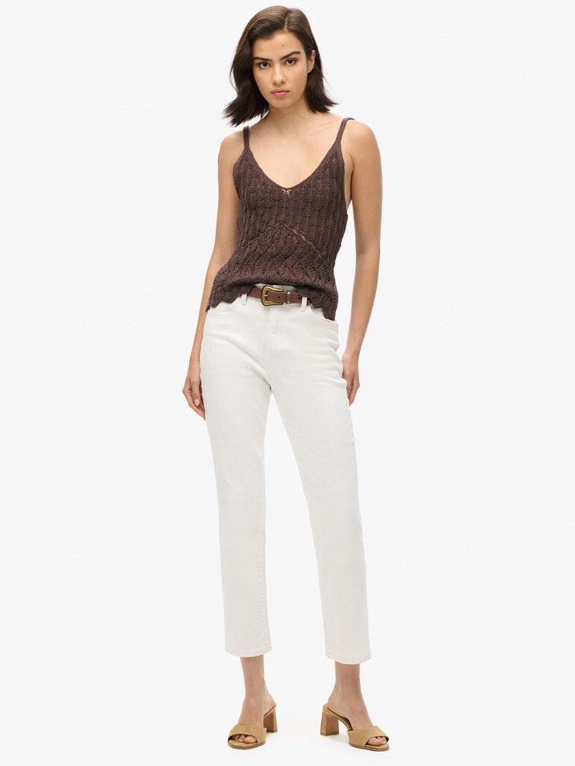 Framed with a classic v-neckline and a sleeveless design, it is made from a soft cotton blend and slips on well with tonal denim ready for the summer.