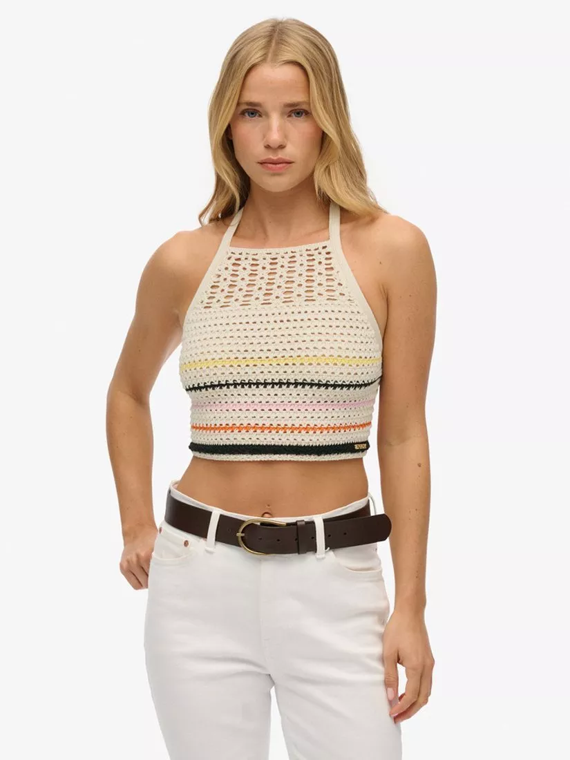 For an effortlessly trendy look, the Cropped Halter Crochet Top is your best friend. Fully adjustable to give you that perfect fit, you'll be crafting perfectly curated outfits all season long, without worrying about discomfort.