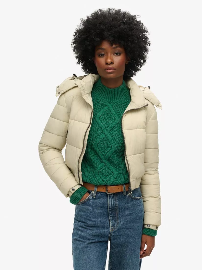 A wardrobe staple for winter weather, this puffer coat from Superdry highlights the waist with its cropped hem.