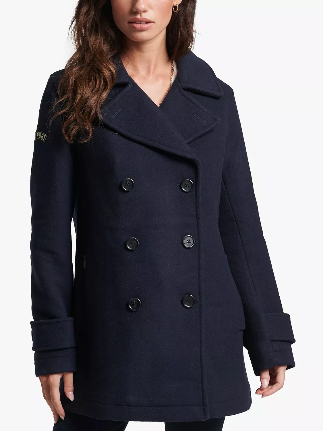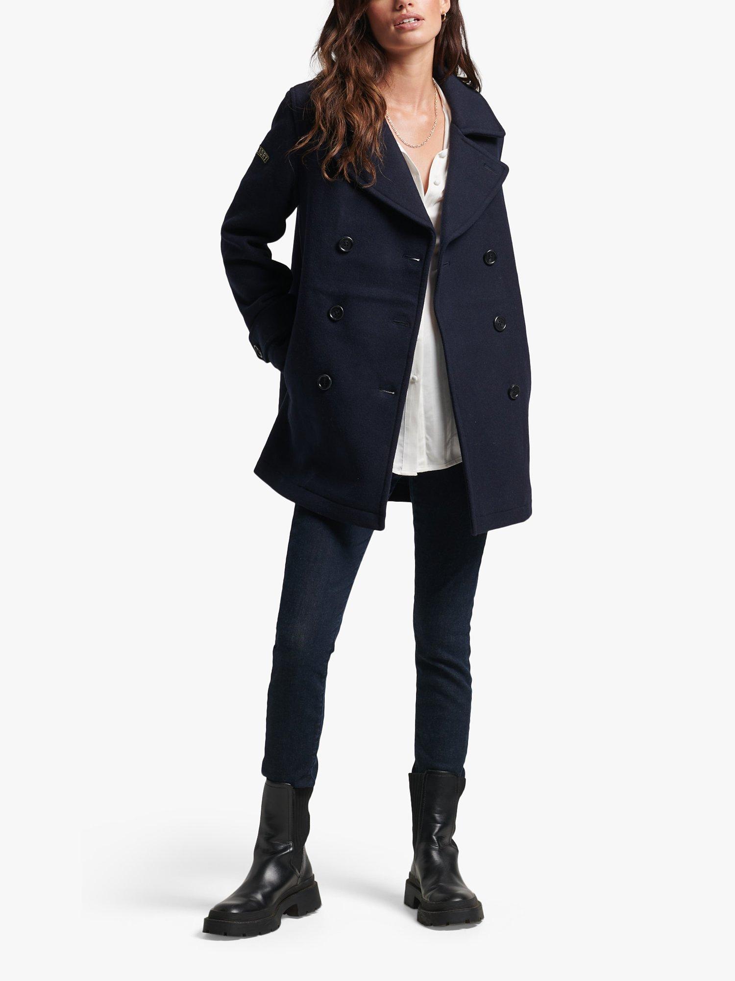 SuperdryDouble Breasted Wool Peacoat, Eclipse Navy