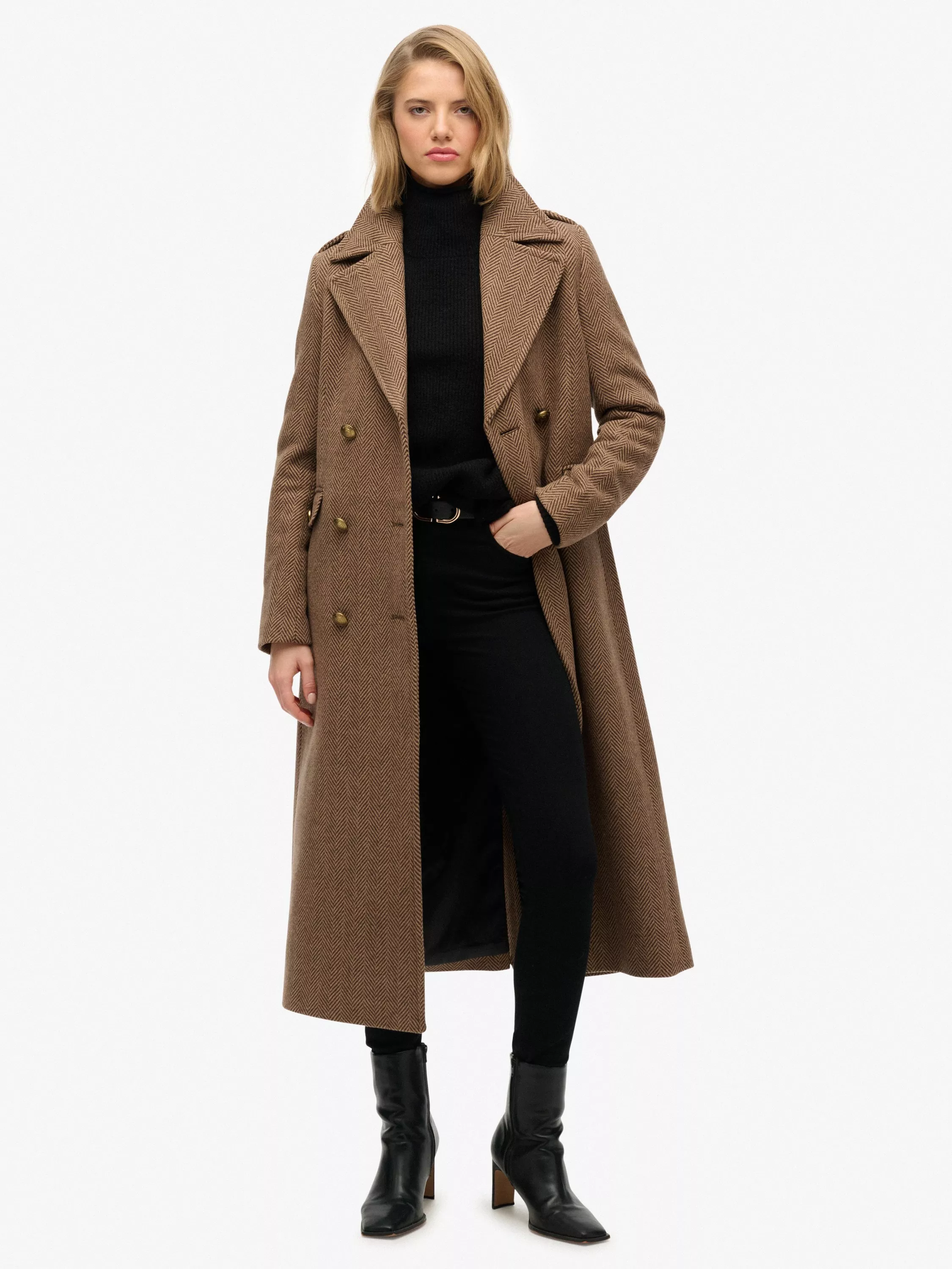 The Double Breasted Wool Rich Coat creates a strong, elevated silhouette to revive any outfit. The jacket has been expertly curated with inspiration from military clothes and thoughtfully finished with gorgeous eye-catching elements such as ornate button detailing throughout.