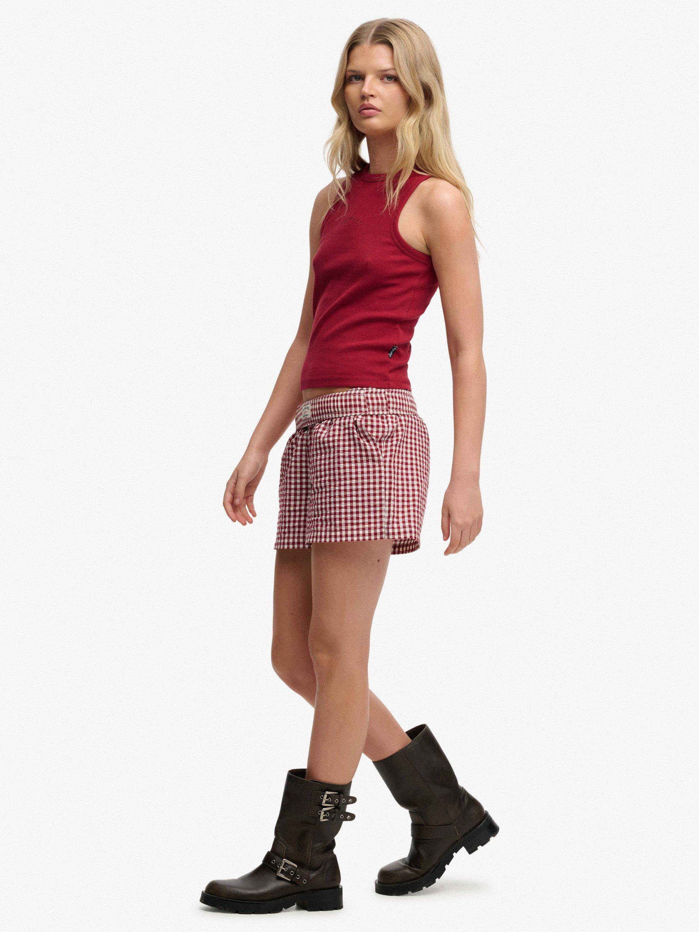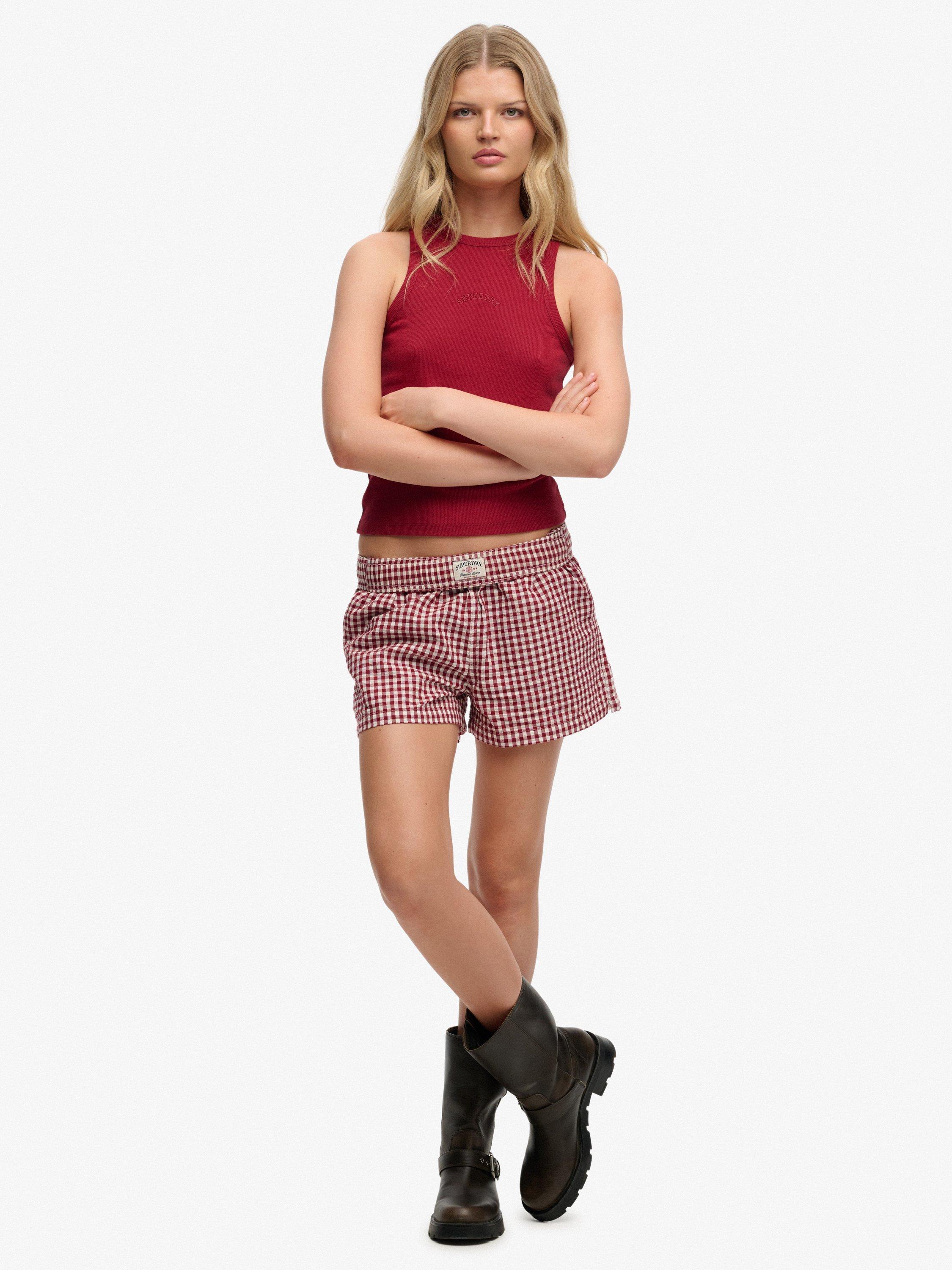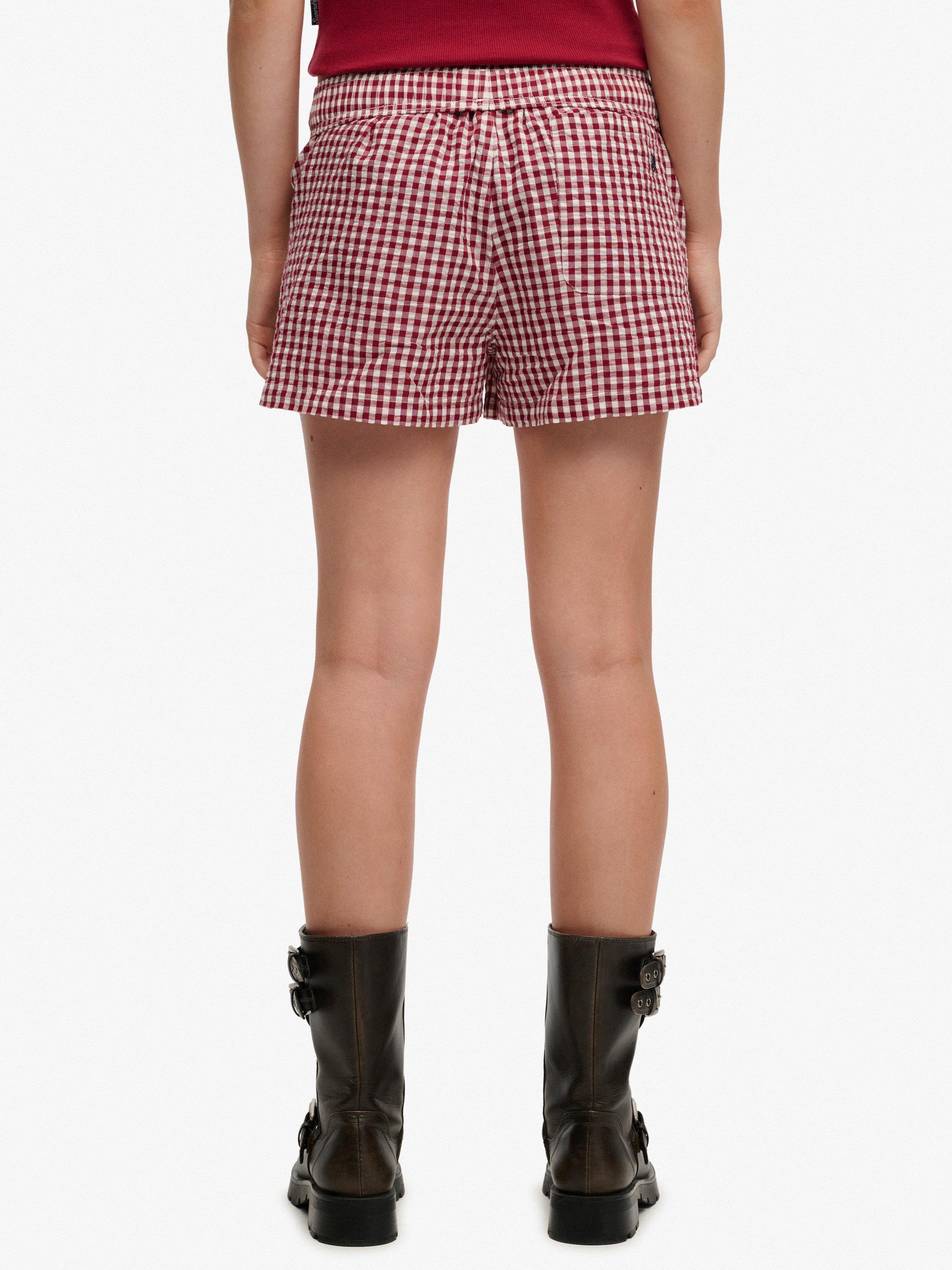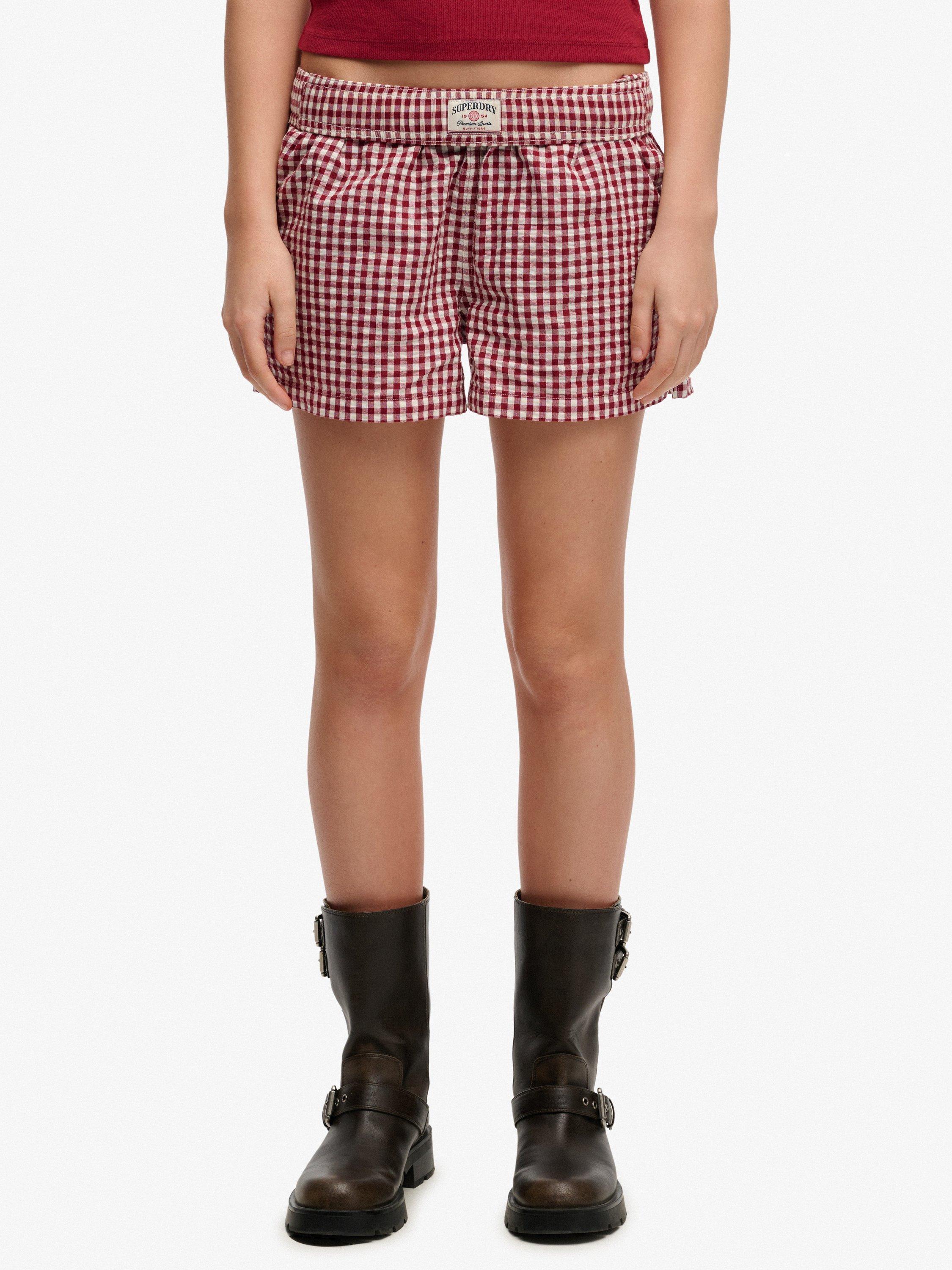 SuperdryElastic Waist Gingham Shorts, Red/White
