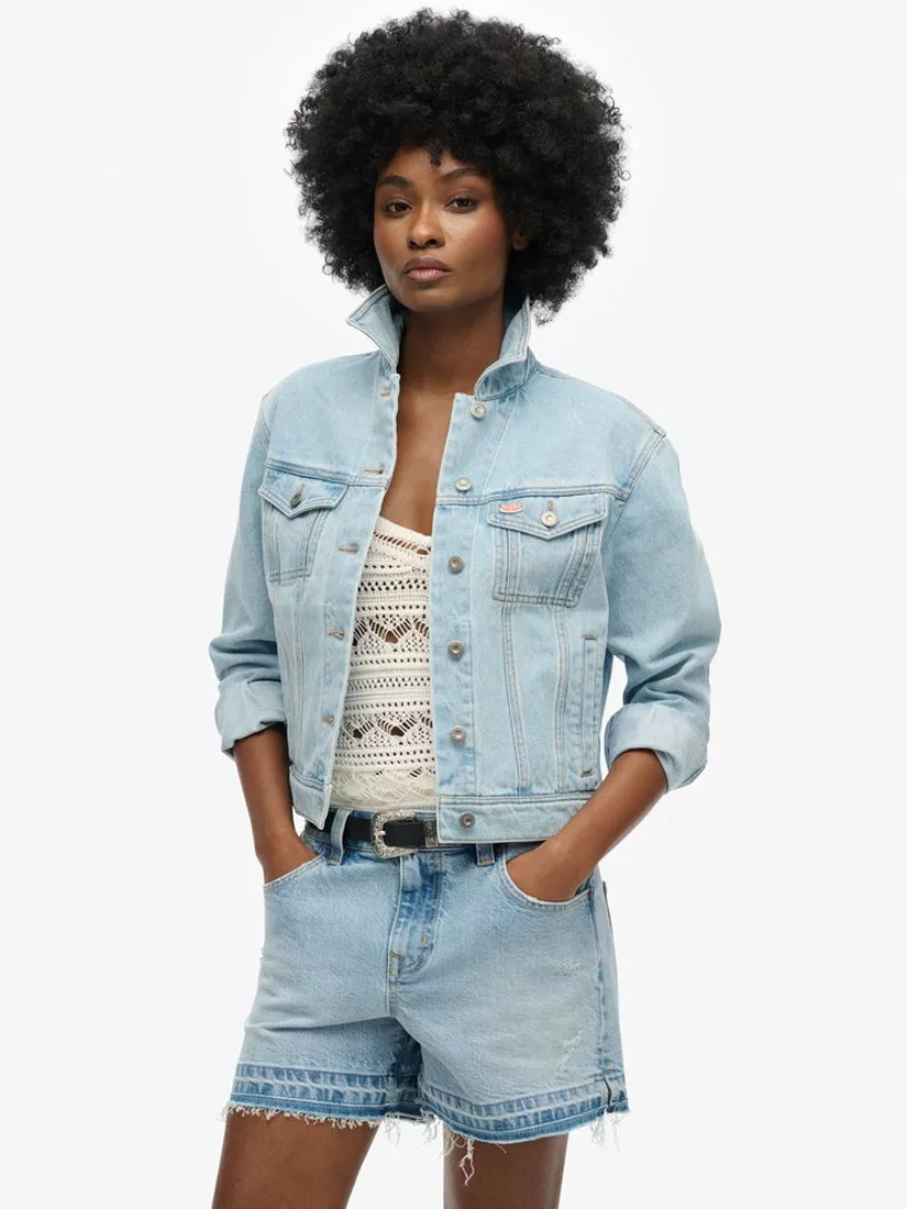 Distinctive and stylish, our Embellished Denim Jacket has been reworked with visions of serenity and creativity just for you. Crafted with a perfect relaxed fit and a colourful embroidered graphic on the back, style with denim jeans and a pair of espadrilles for the go-to look of the season.