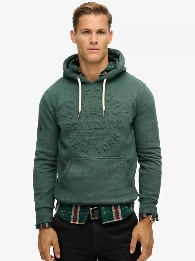 SuperdryEmbossed Logo Hoodie, Buck Green Marl