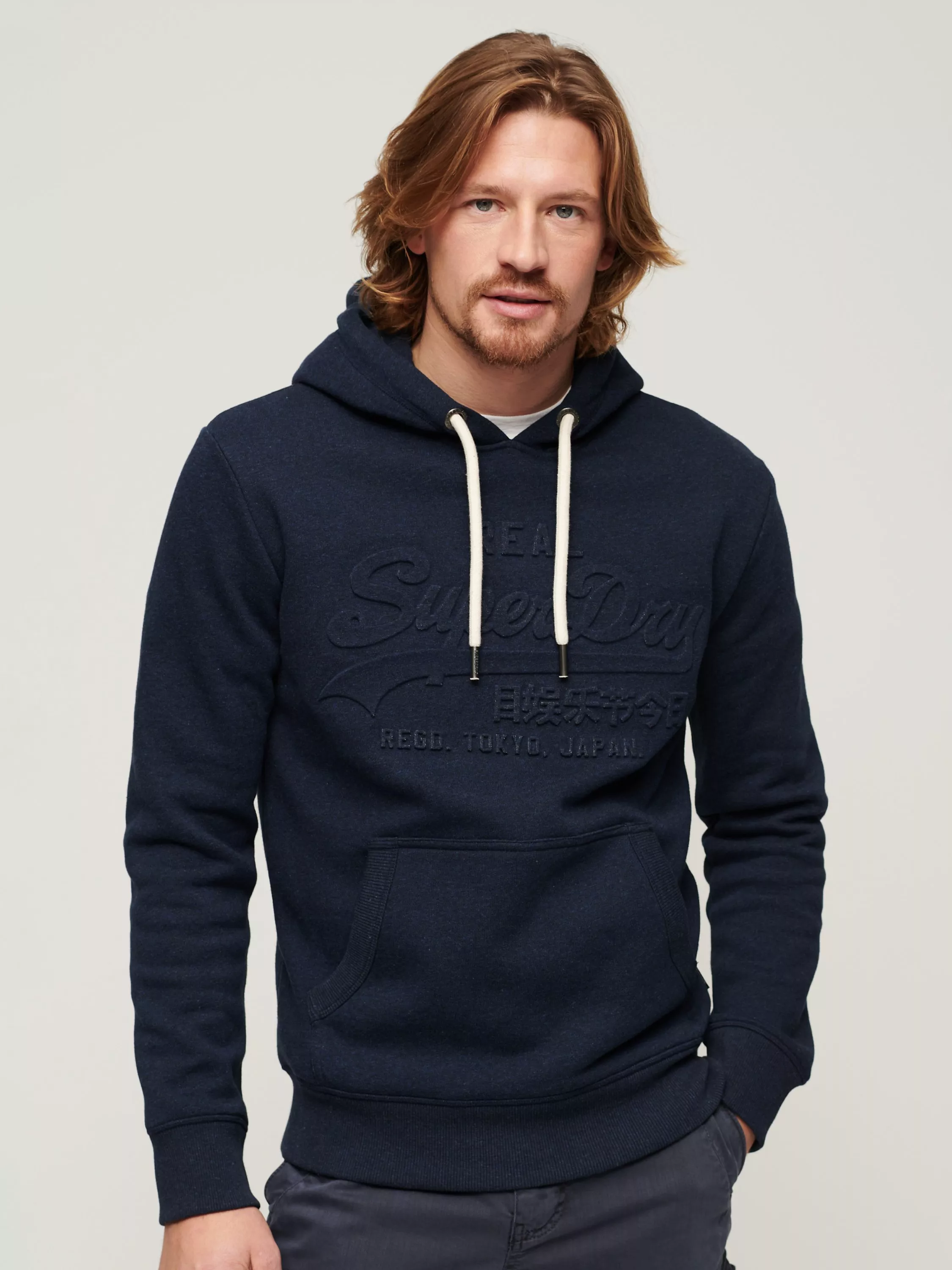 SuperdryEmbossed Vintage Logo Hoodie, Surplus Blue Grit, L