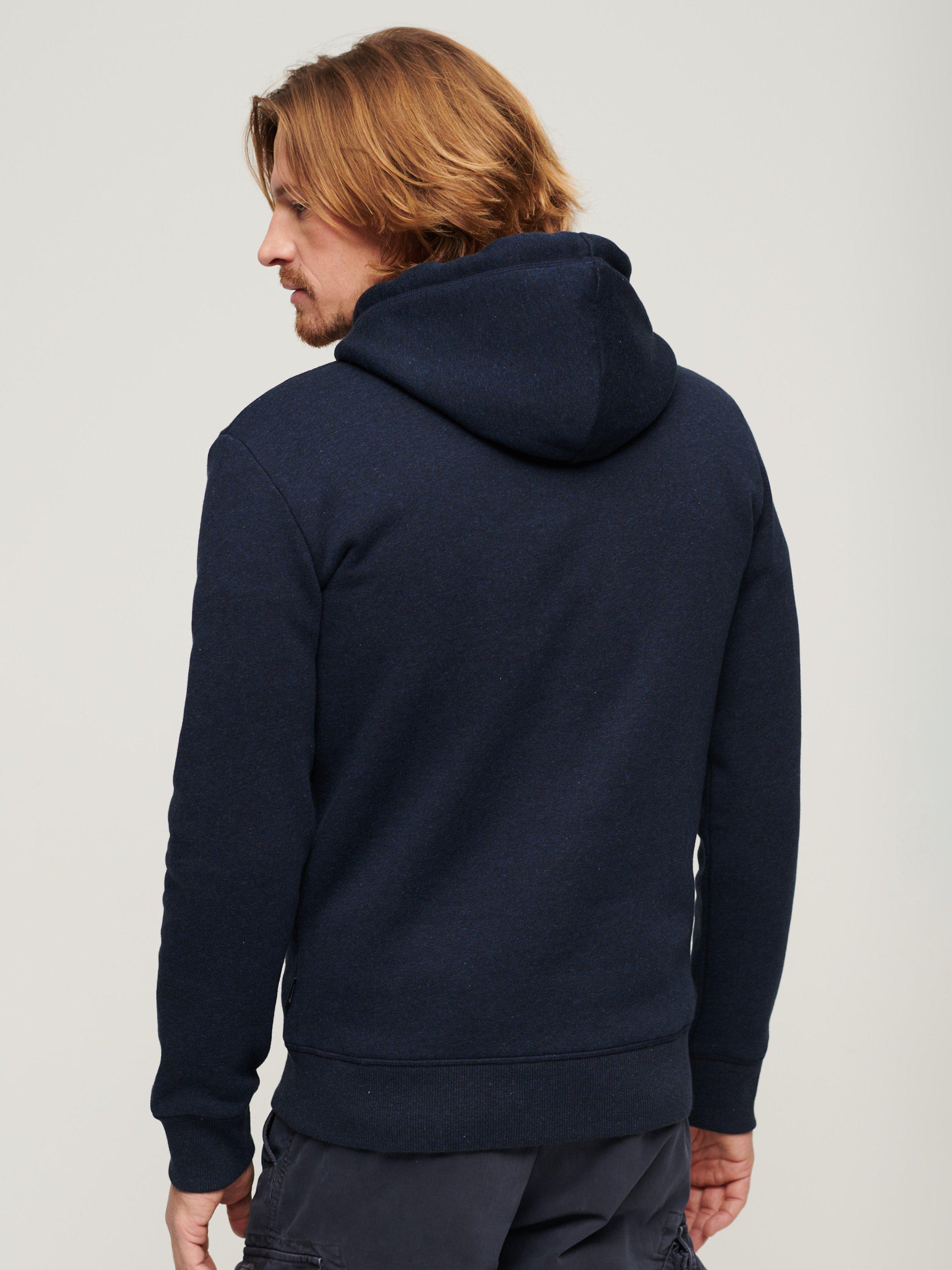 Effortlessly bridging the gap between comfort and style, this cotton blend hoodie from Superdry has an adjustable drawstring neckline and full-length sleeves.