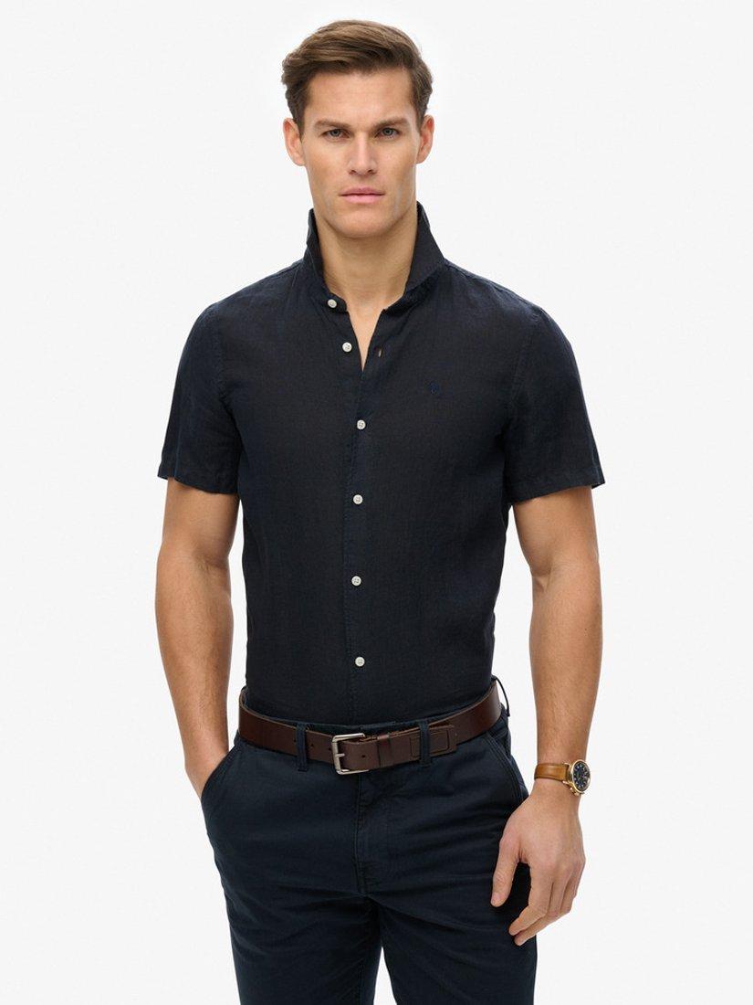 SuperdryEmbroidered Vacation Linen Shirt, Navy