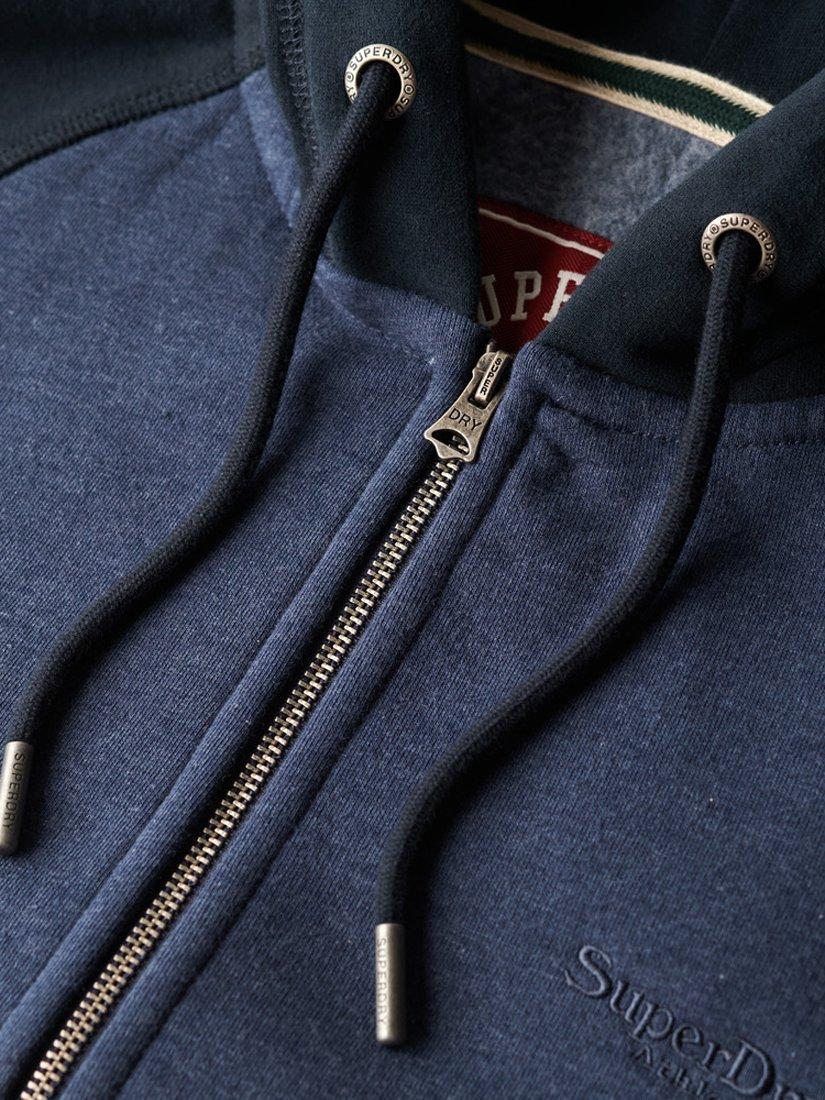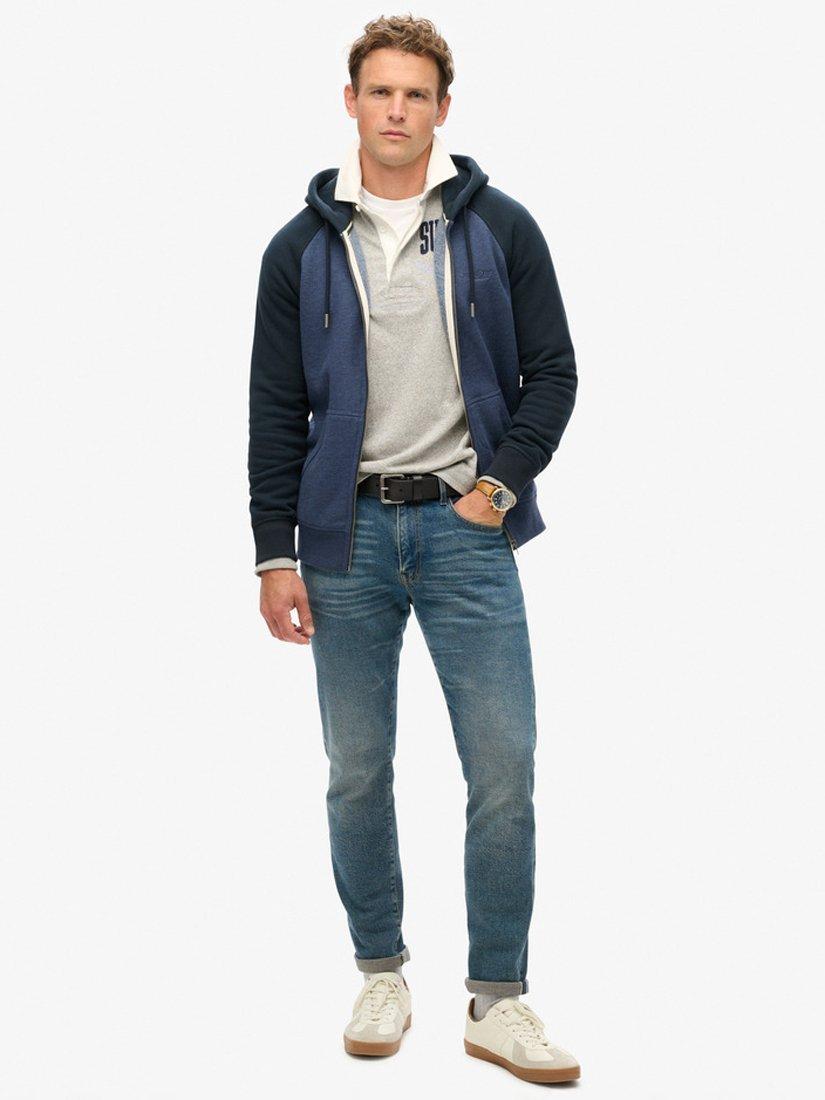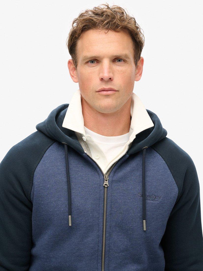 A comfortable classic for day-to-day wear, it's no wonder that it's called the Essential Baseball Zip Hoodie. Drawing upon the athletic aesthetic of America, this timeless piece offers brushed comfort and a ribbed fit as part of your everyday layering options. The sheer versatility of this hoodie has created an iconic vintage legacy and is a reliable way to layer up with confidence whilst looking good with Superdry quality. Slim fit designed to fit closer to the body for a more tailored look