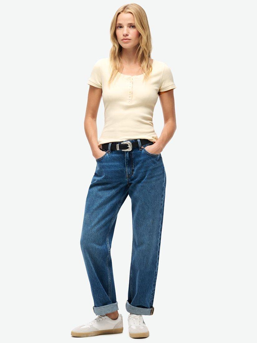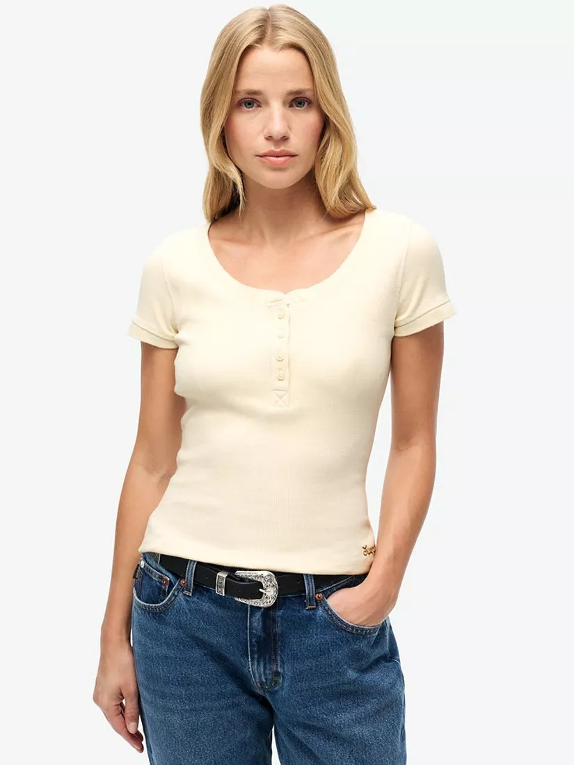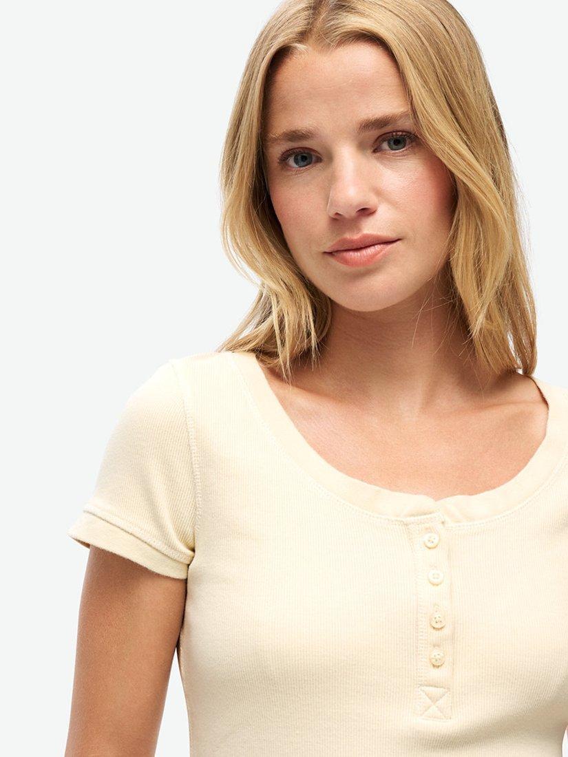 SuperdryEssential Button Down Short Sleeve Top, Turtledove Cream