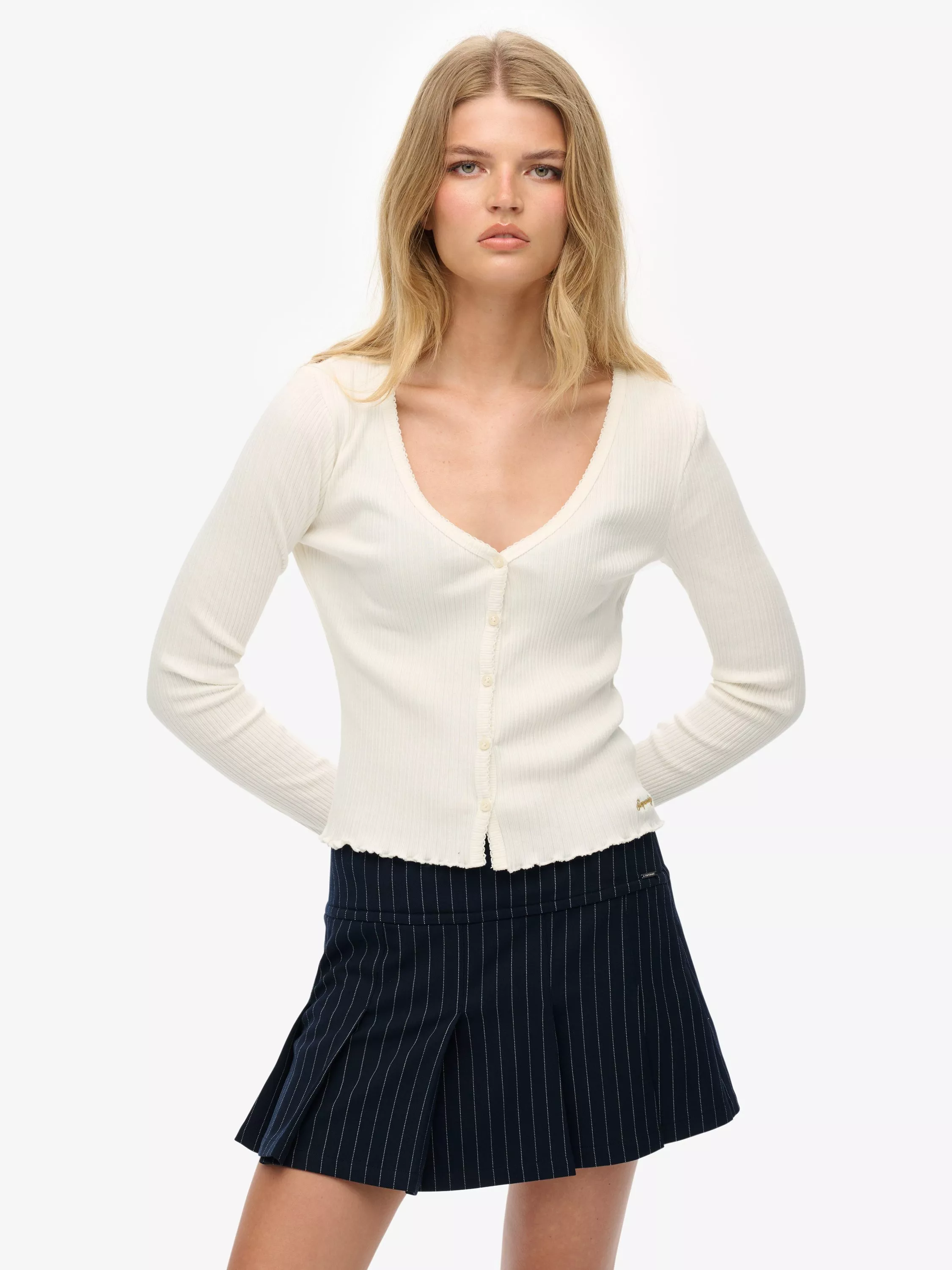 SuperdryEssential Button Through Long Sleeve Top, Off White