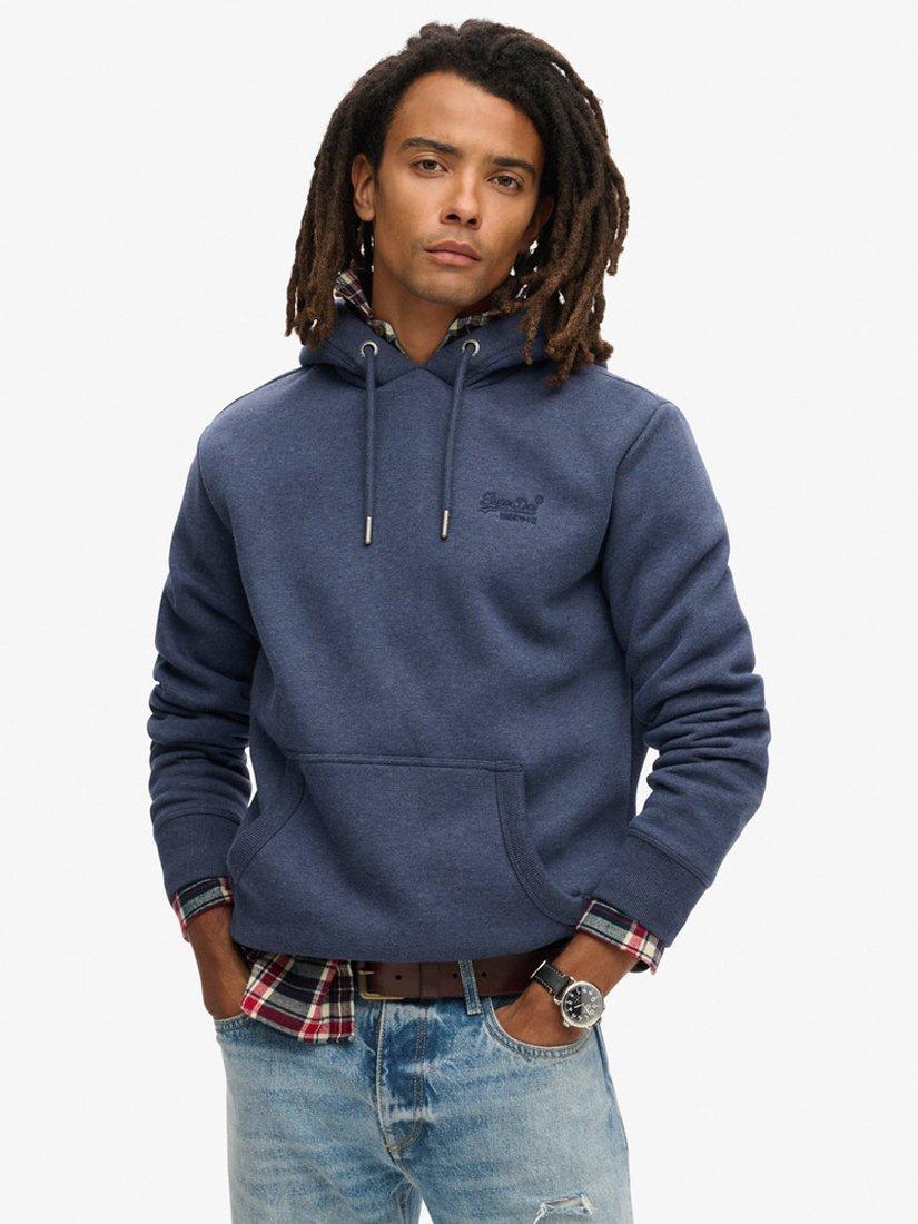 A classic overhead design with a lined hood with drawcord and front pouch pocket. Completed with ribbed cuffs and hem, brushed lining, embroidered Superdry logo, Superdry tab and branded hardware.