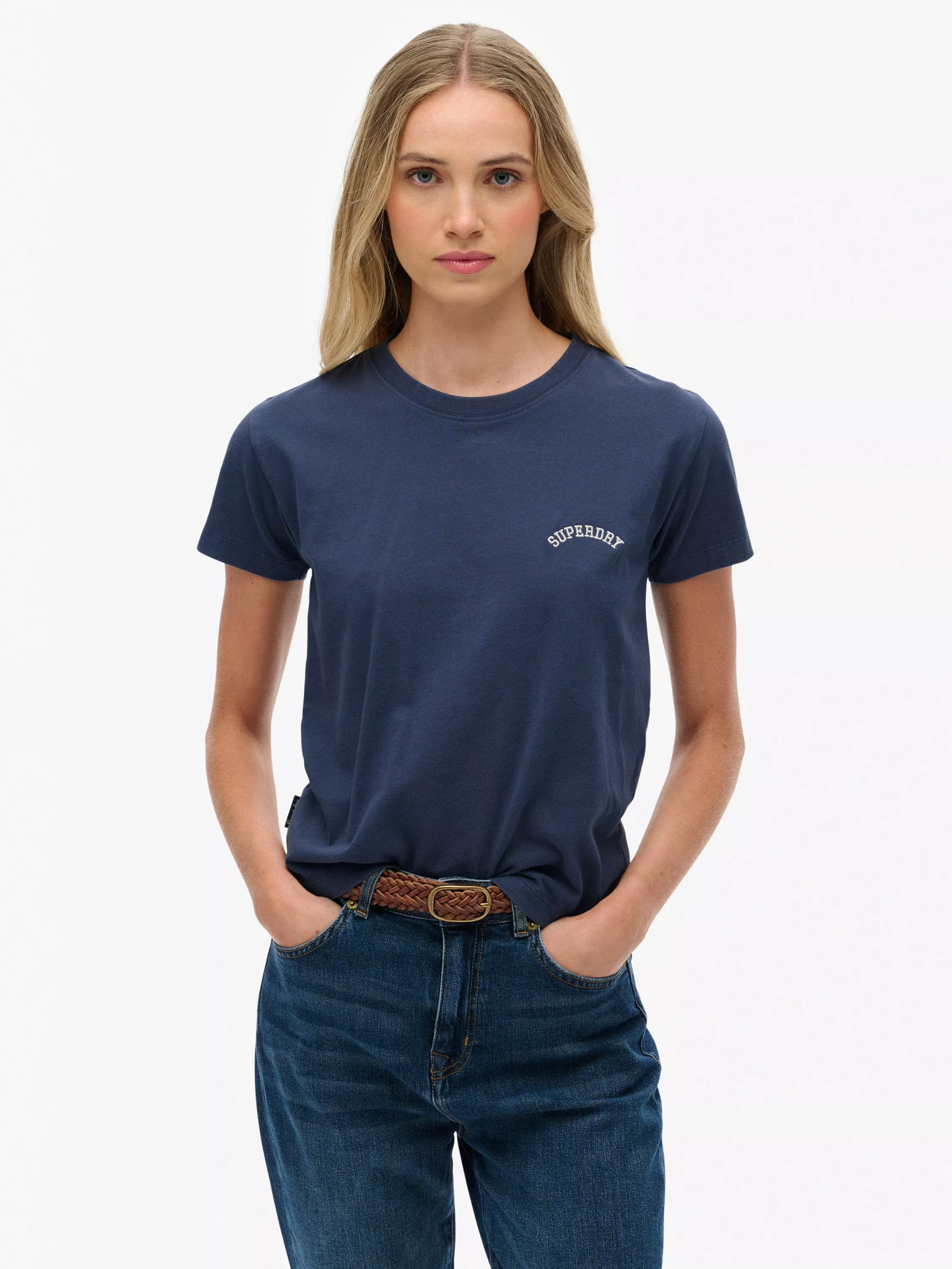A Superdry staple, the Essential Logo fitted T-Shirt brings vintage style into your day-to-day wear. Simplistically stylish and channelling a subtle 90s vibe, it's an essential part of casual wear and makes for a classic look with jeans and trainers.