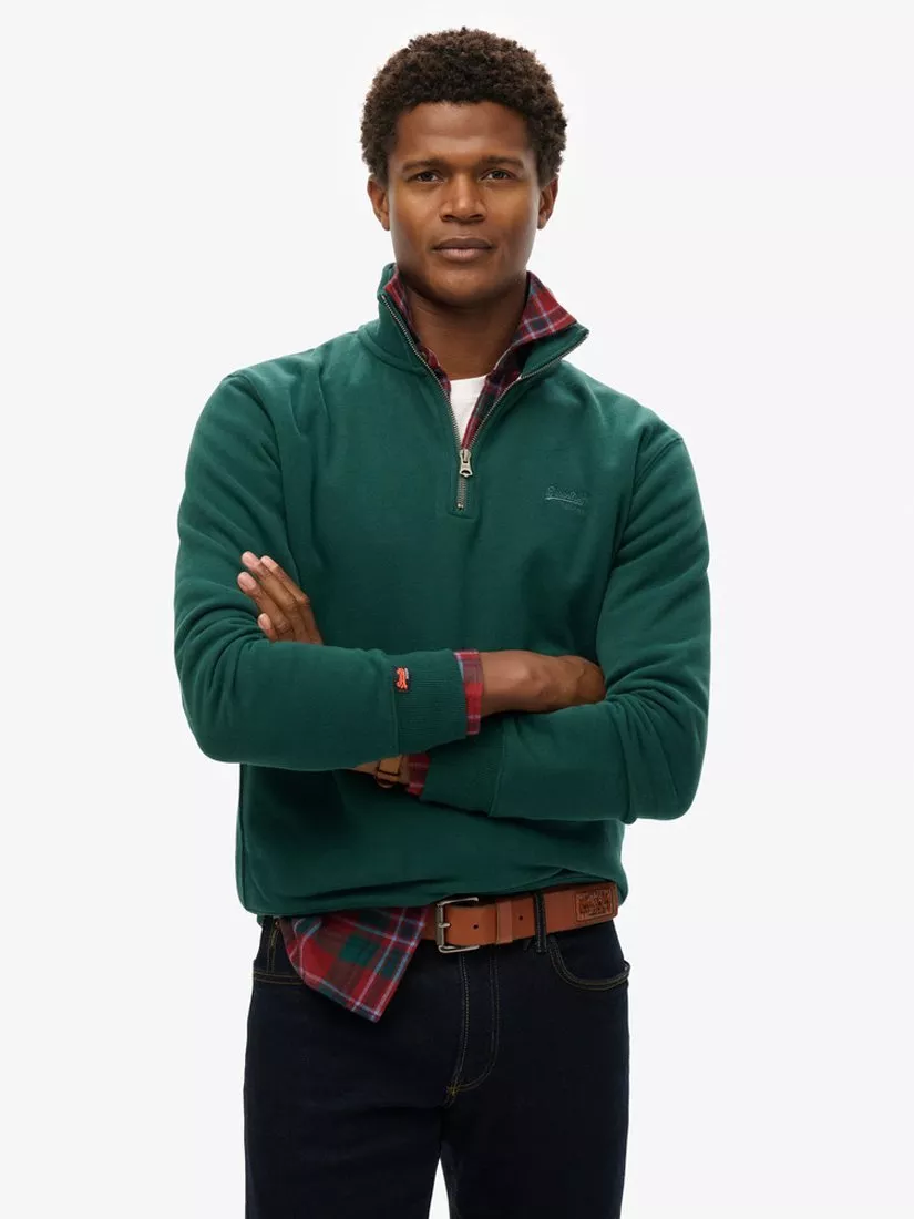 Combining the smart sophistication of a henley collar with the open comfort of a sweatshirt design, this piece will effortlessly round off your look. Cut to a slim fit for a more tailored look with a quarter-zip collar, ribbed trims and an embroidered Superdry logo.