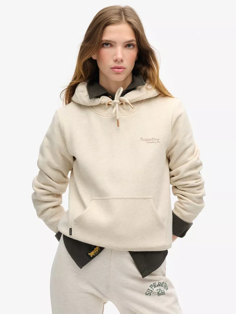 The Essential Logo Hoodie is crafted with an embroidered logo to ensure your authentic look carries classic Superdry style. The ideal way to layer up, the extra comfort makes all the difference when it comes to soft and effortless style. Whether you'd like to bundle up for a cosy lounge at home or wrap up for a cool day out, the timeless style of warm, comfortable clothes is a must-have for any casual, day-to-day wardrobe.