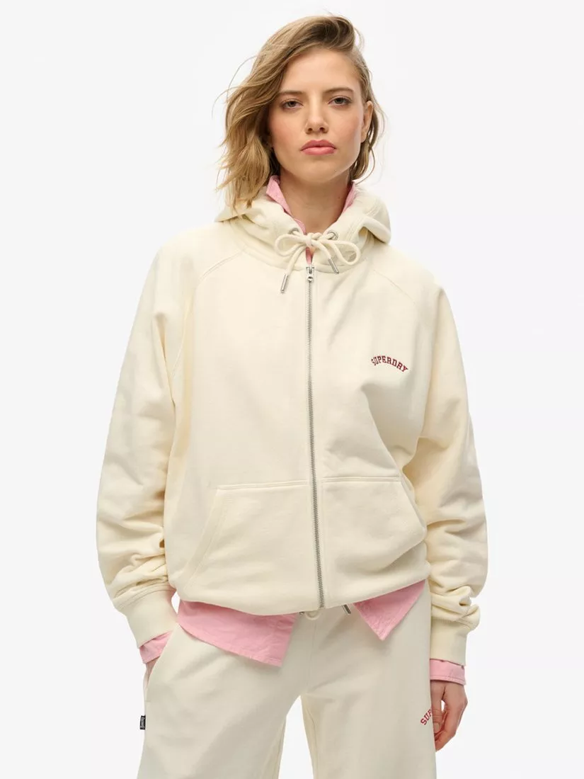 SuperdryEssential Logo Oversized Pure Organic Cotton Hoodie, Desert Bone White, 14