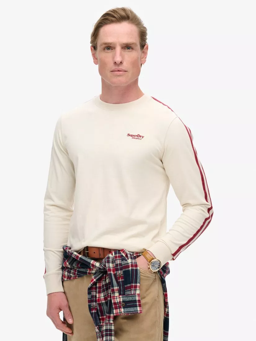 SuperdryEssential Logo Retro Long Sleeve Cotton Top, White Sand