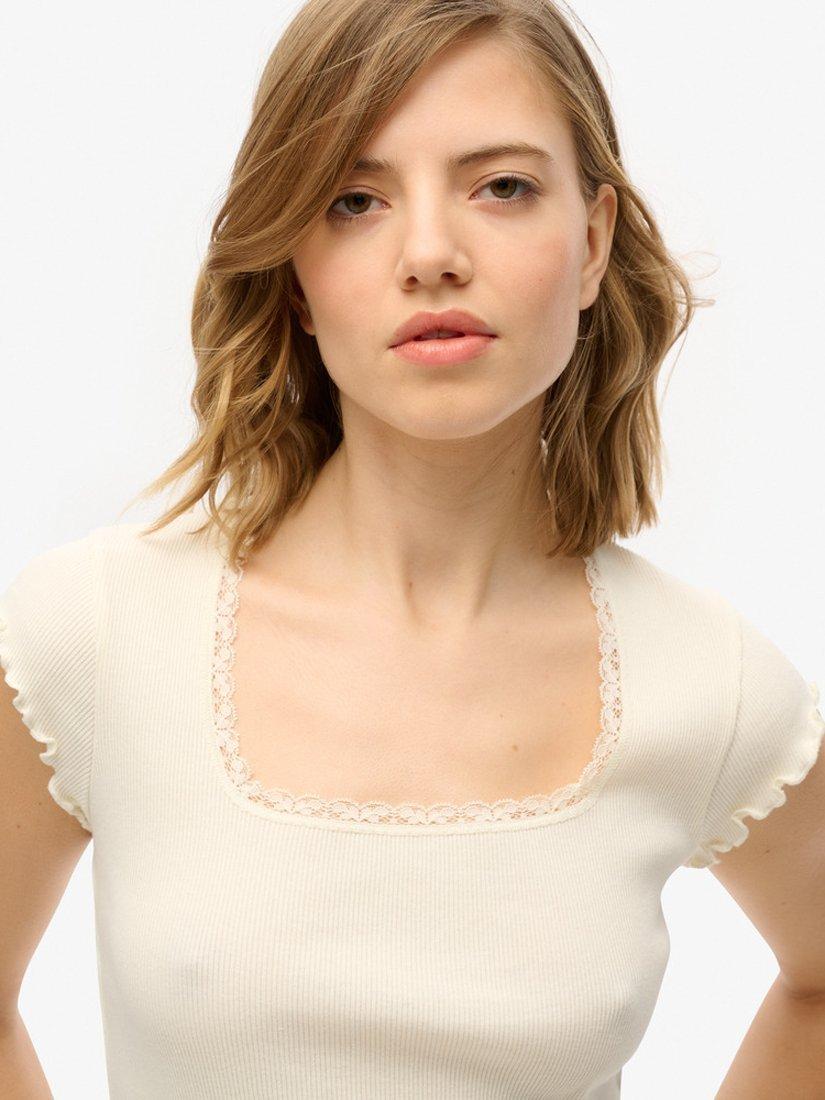 The Essential Square Neck Short Sleeve T-Shirt is a gorgeously pared-back tee that we've expertly crafted with a feminine lace neckline and a slim fit; this allows you to layer in colder seasons or style with a pair of denim shorts for a perfectly versatile tee.