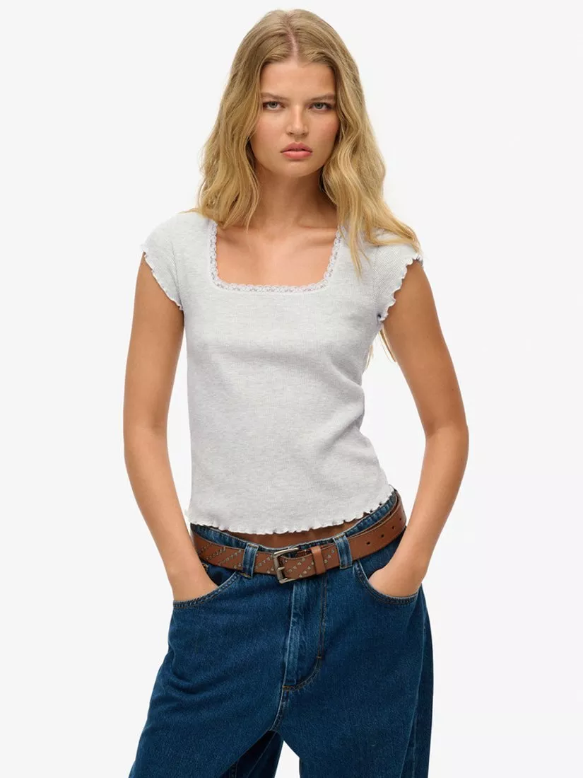 SuperdryEssential Square Neck T-Shirt, Glacier Grey Marl