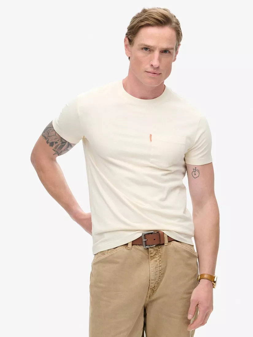 SuperdryEssential Washed Pocket T-Shirt, Washed Chalk