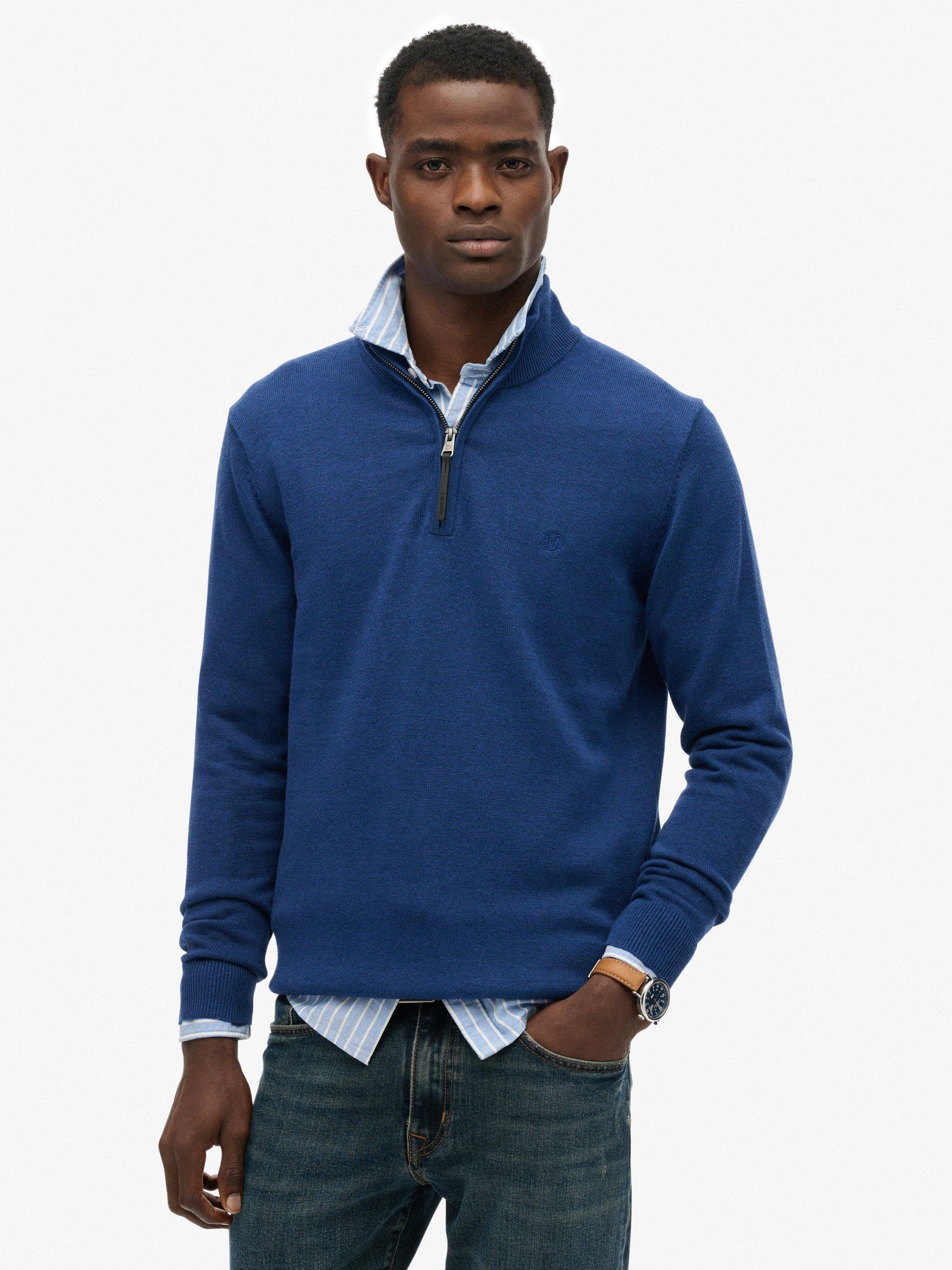 Crafted for versatility and style, the Essentials Cotton Half-Zip Jumper is a wardrobe staple. It has a slim, tailored fit and is made from a soft, rich fabric. The design features a half-zip fastening and ribbed trims, and is finished with an embroidered logo on the chest, making it a subtle way to elevate any outfit.