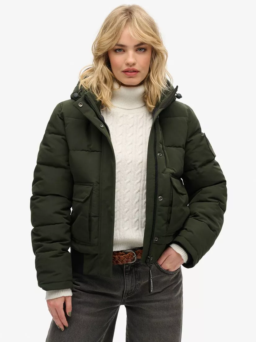 SuperdryEverest Hooded Padded Bomber Jacket, Olive Green