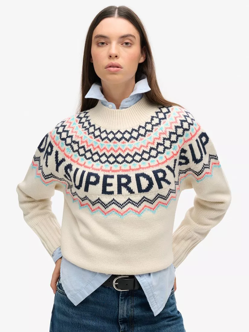 A timeless favourite for keeping warm on those cooler days, the Fairisle Branded Jumper is the perfect winter warmer to keep your style cosy and elevated. Brace for those icy mornings, knowing you are staying true to your playful style and keeping cosy with this luxuriously soft knit. It's a seasonal staple for layering up in luxurious comfort and elevating your day-to-day look.