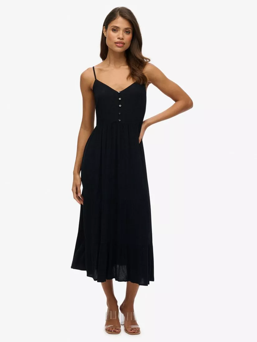 The Half Button Tiered Midi Dress is a gorgeous addition for the warmer months. Crafted with a chic silhouette and a stylish tiered skirt, it's effortless to style while elevating your authentic looks.