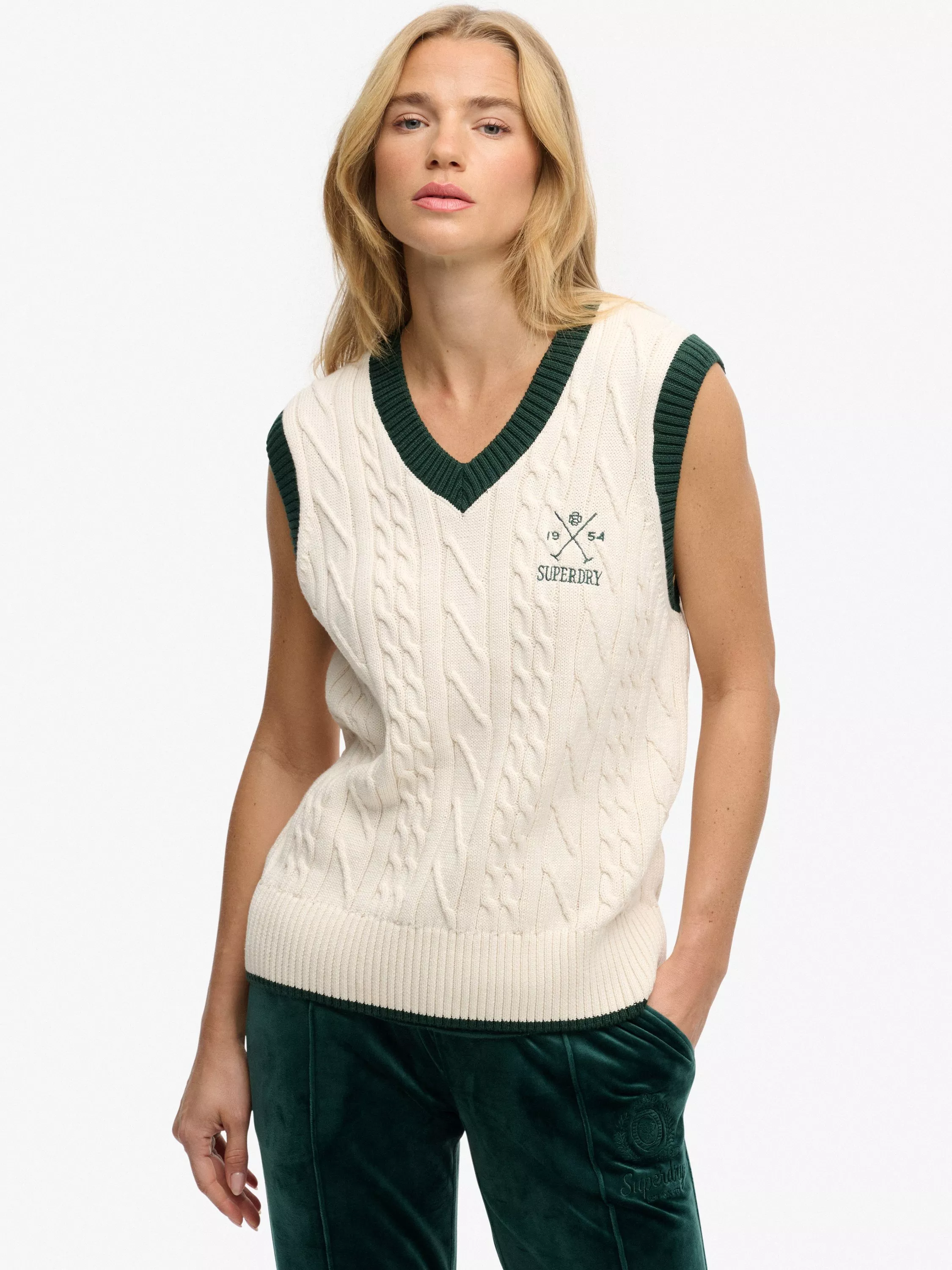 Inspired by contemporary chic on the court aesthetics, the Heritage Knitted Tank is a unique blend of nostalgic heraldry and a gentle cable knit design that effortlessly elevates your everyday. Pair with your favourite denim for a luxuriously modern look or with a skirt for that truly sport-infused vibe. The new way to experience sumptuous comfort while maintaining your authentic style is here.