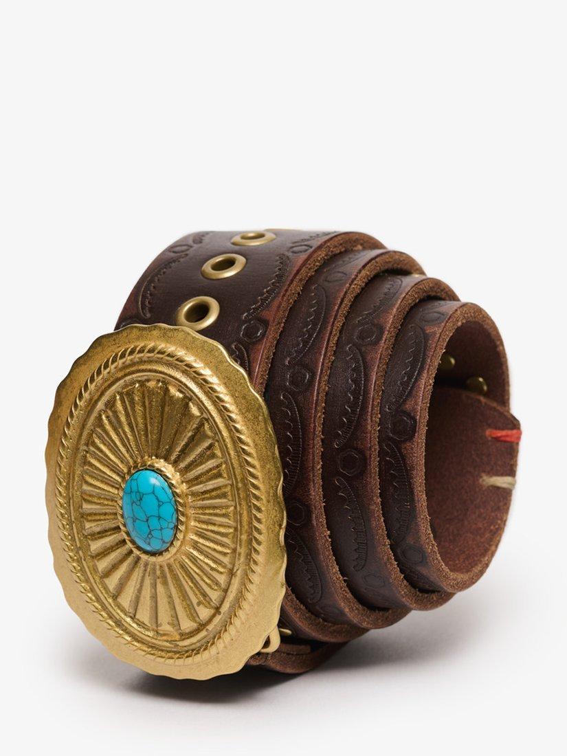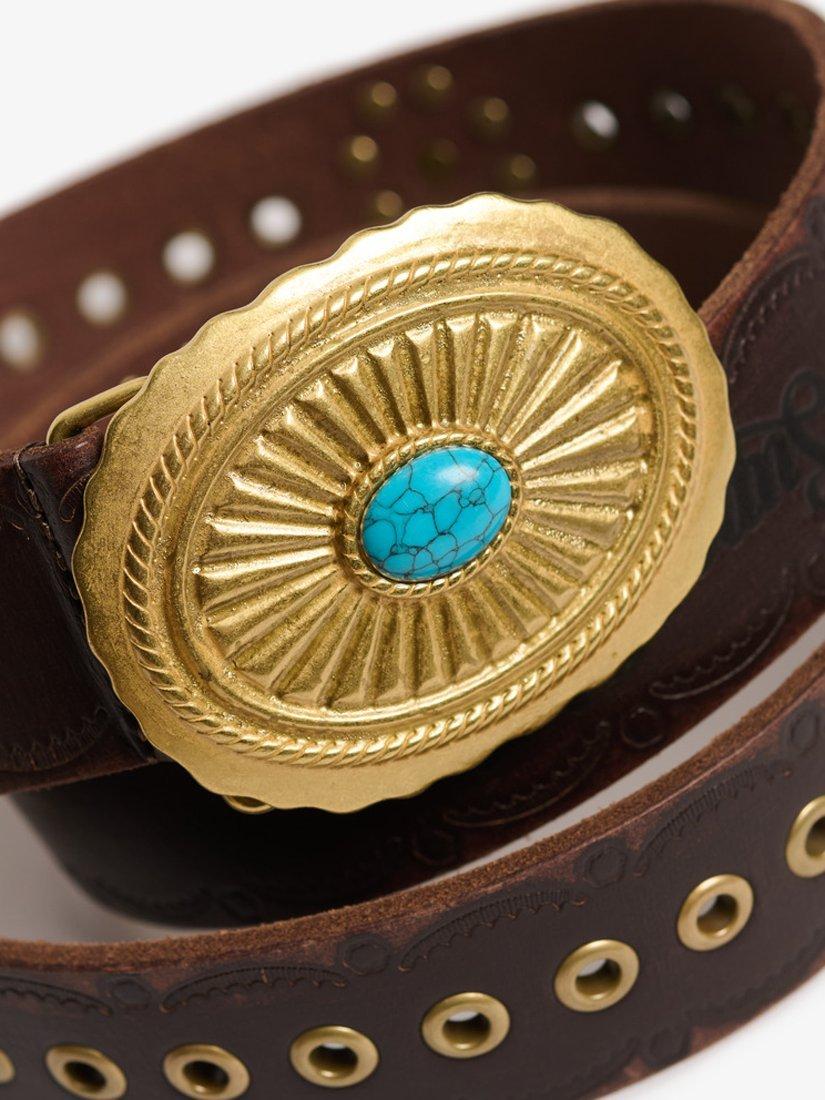 The Heritage Ranch Belt channels a Western aesthetic with an authentically premium feel, featuring an eye-catching golden buckle as its focal point to bring a touch of cowboy-chic to any outfit. Adorned with debossed patterns and stylish metallic studs, this is the ultimate fashion-forward accessory.