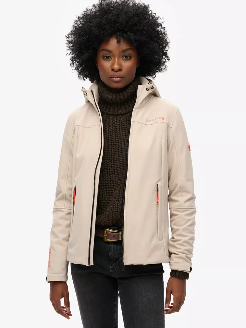 With its slim fit and sleek finishing, this will not only be the comfiest jacket you've ever worn, but it will also make you look super stylish whatever you pair it with. Hooded with lightly brushed lining with bungee adjustable cord. Zip through. Hook and loop adjustable cuffs. Bungee cord adjuster at the hem. Two external pockets with zip fastening. Two internal pockets. Contrast embroidered Superdry text on the back and on the sleeve.
