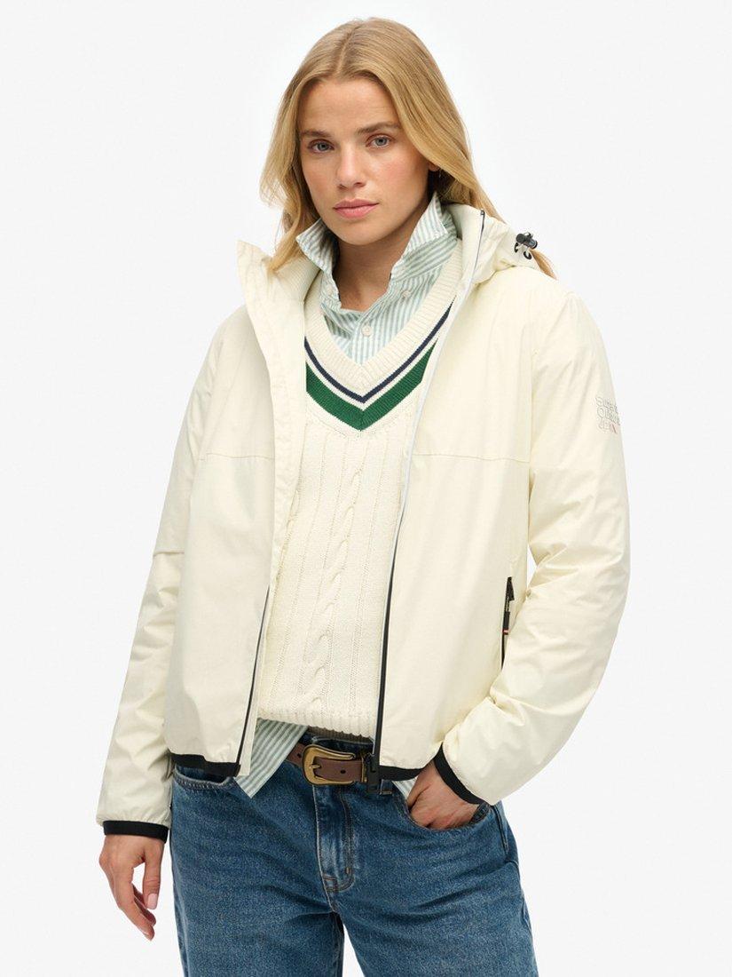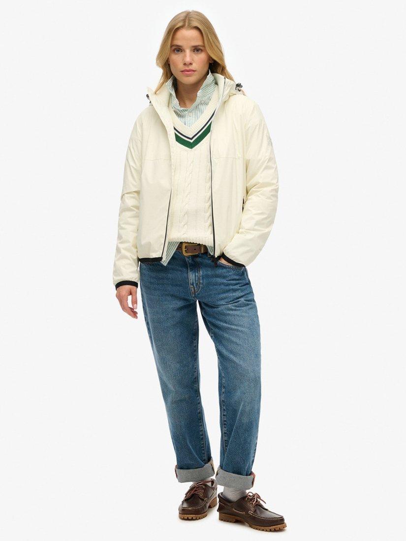 A sleek, classic design. Our Hooded Logo Windbreaker Jacket has been crafted with a comfortable second ribbed collar and a lightweight material, its perfect for exploring on long walks or throwing on for that just right, extra layer.