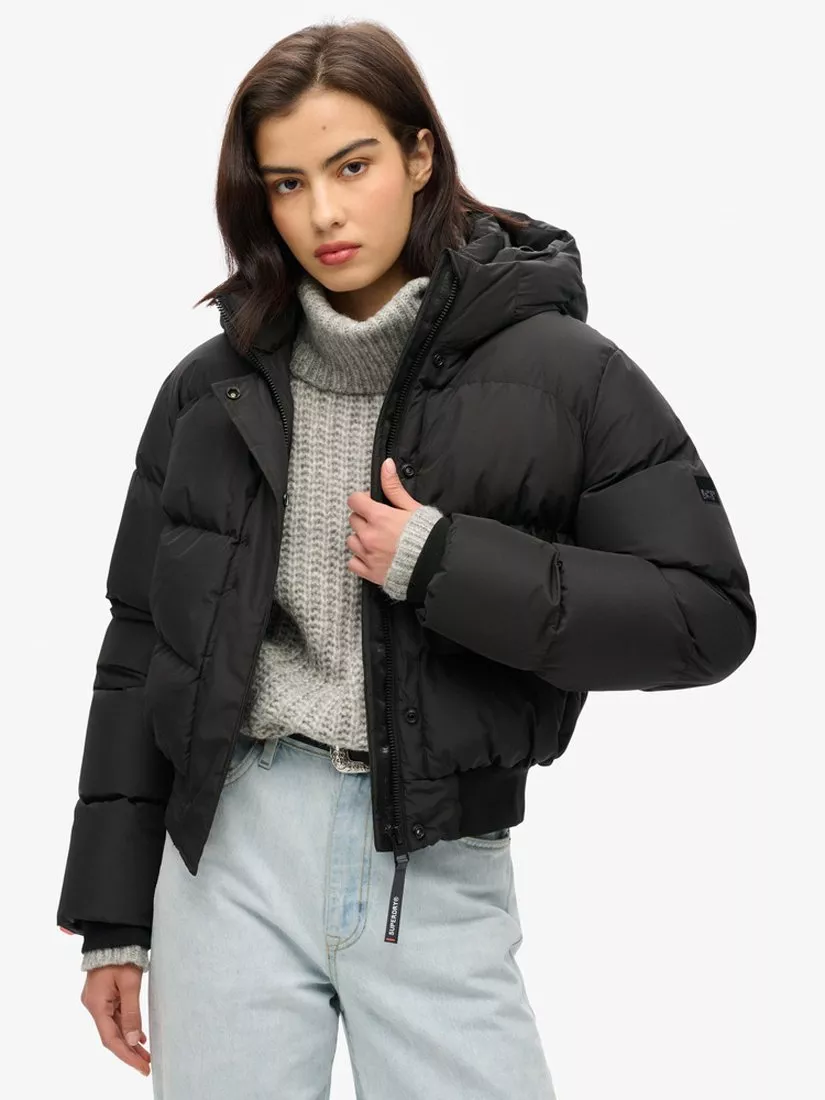 Stay warm and trendy this season with our Hooded Sports Puffer Bomber Jacket. Thoroughly padded and completed with a zip and popper fastening, we've designed this puffer with your warmth in mind. The cropped, boxy style oozes luxury trendsetter vibes, and thanks to the durability of the materials and the timelessness of the style, this jacket will continue to keep you warm and fashionable for many more seasons to come.